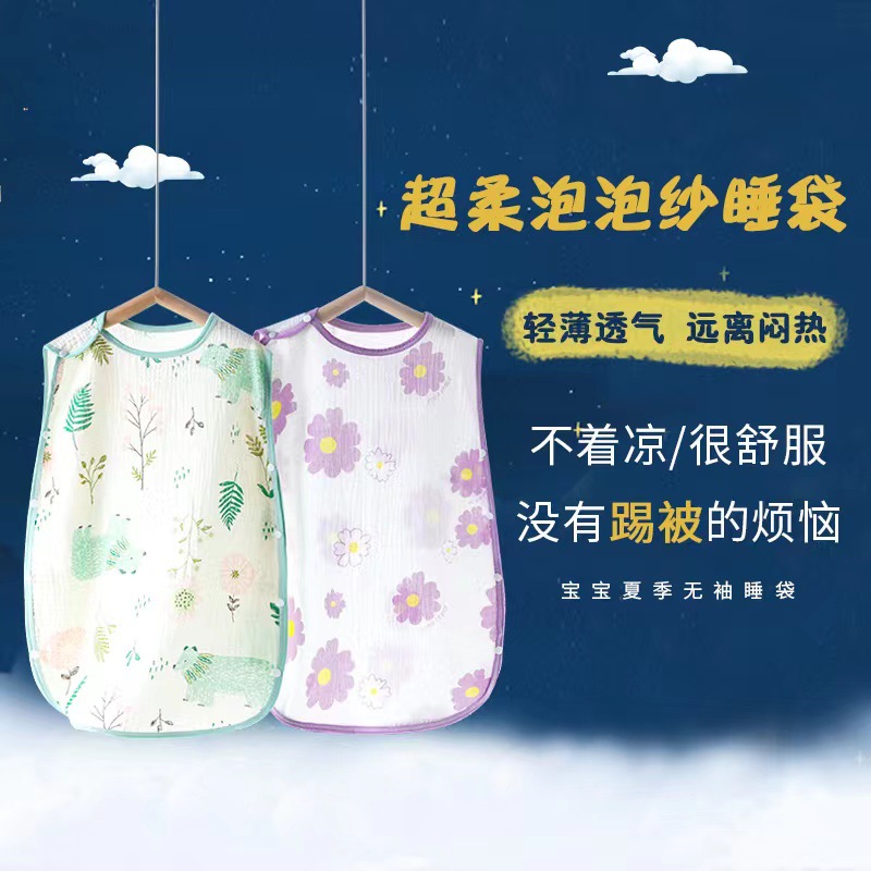Honeyson婴儿睡袋夏季薄款宝宝纯棉纱布无袖背心睡衣儿童防踢被S093