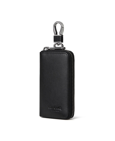 皮尔卡丹(pierre cardin)男士牛皮钥匙包头层牛皮简约商务多功能汽车拉链锁匙扣 J8A909-173001A黑色