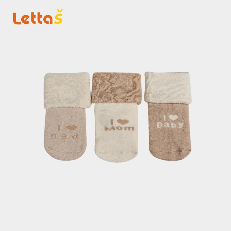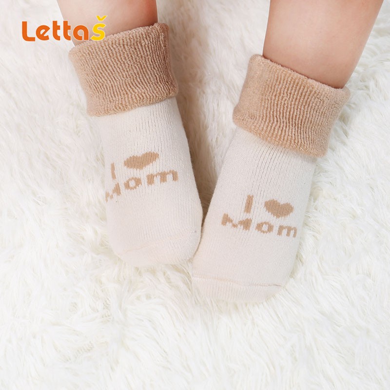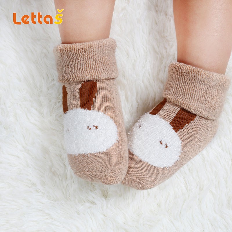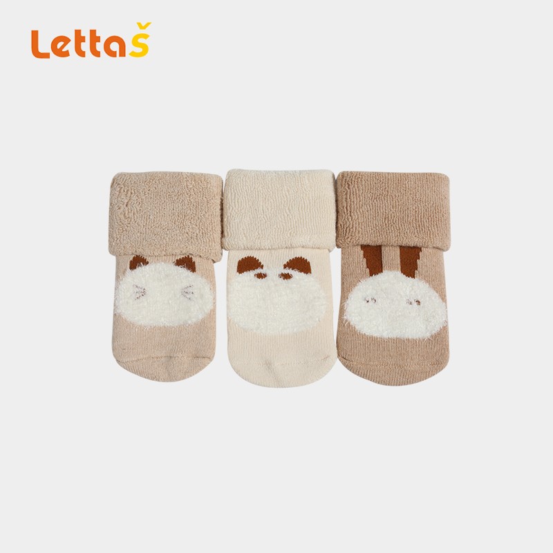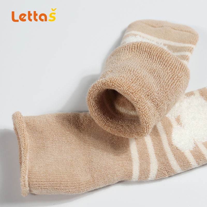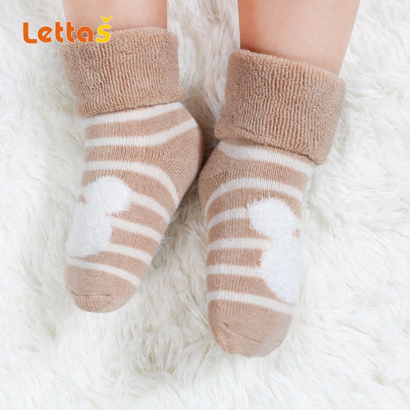 Lettas秋冬新款宝宝袜子男新生儿婴儿袜子加厚保暖毛巾袜儿童袜女三双装W018