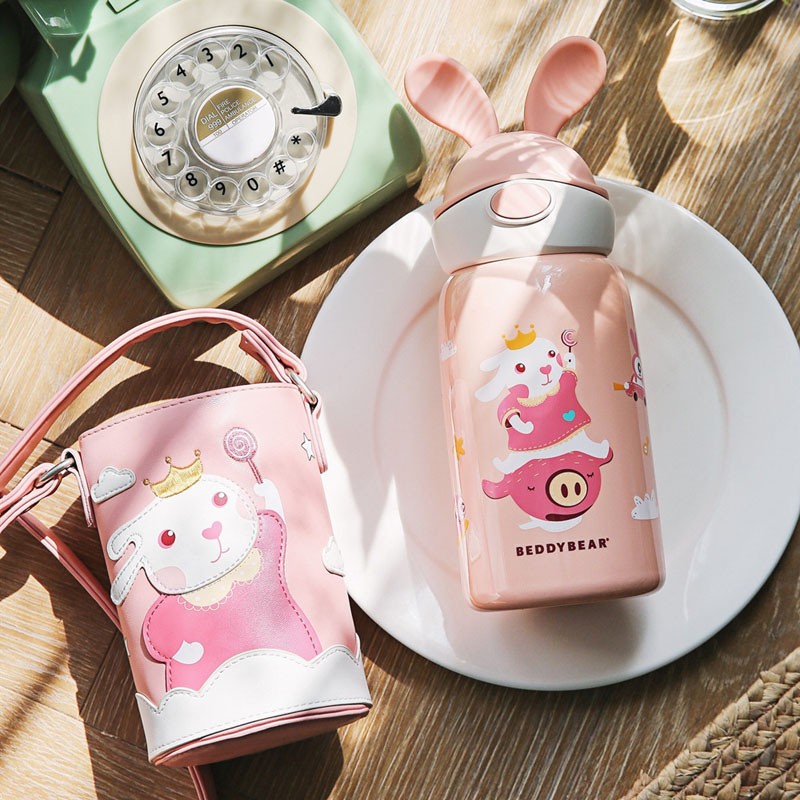 韩国杯具熊新款限量版兔飞飞儿童保温杯小学生兔耳朵兔子水杯水壶