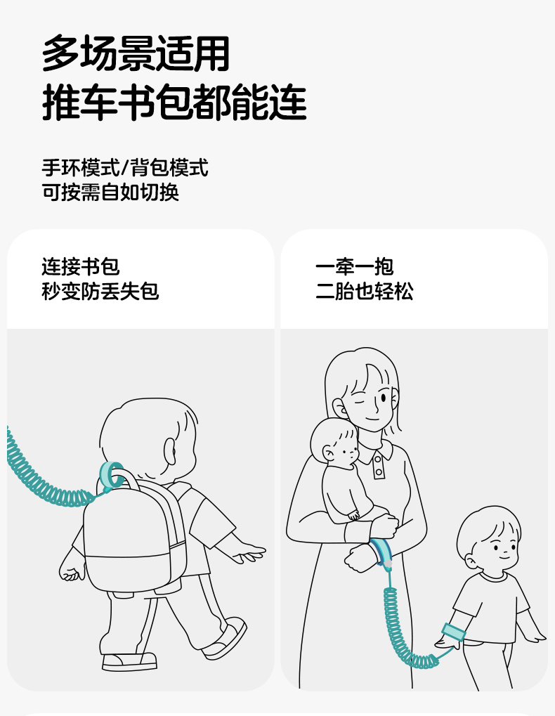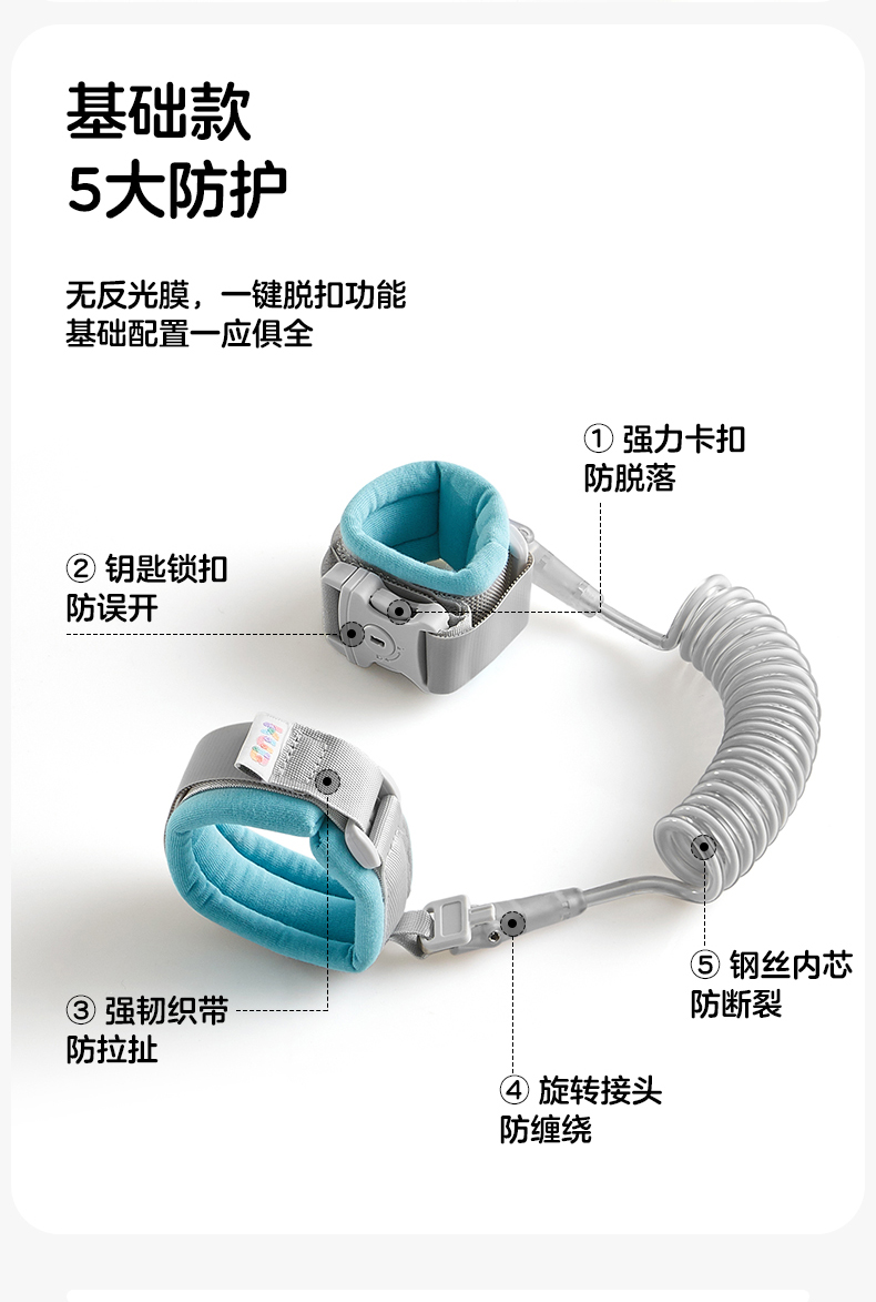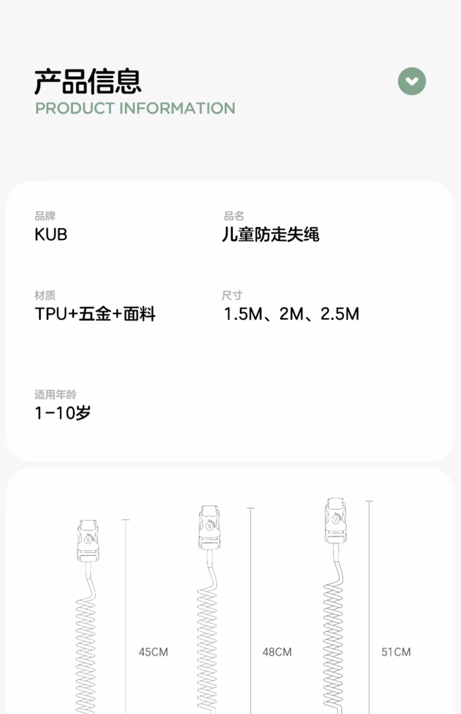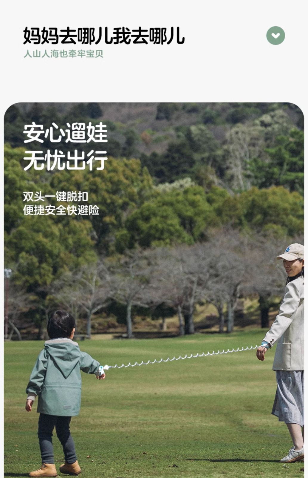 KUB可优比-一键脱扣防走失带J3-升级款-黄色2M