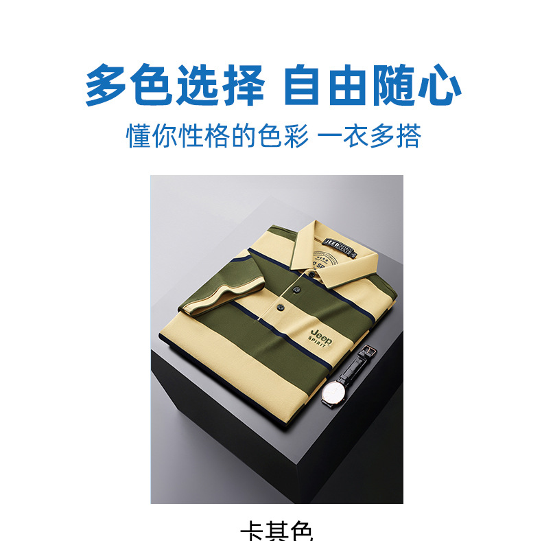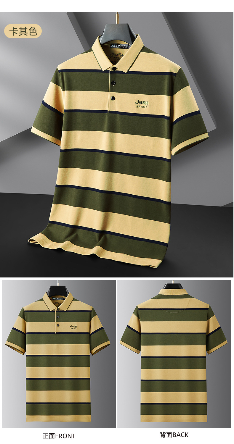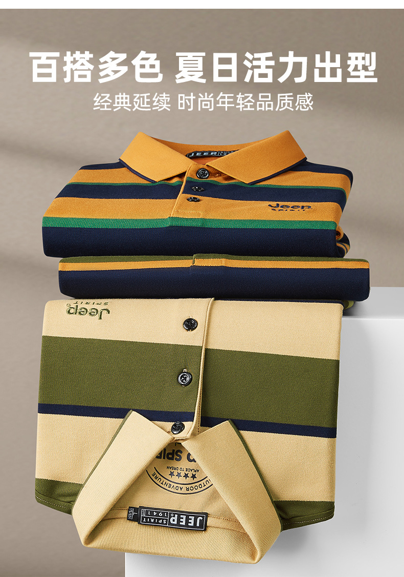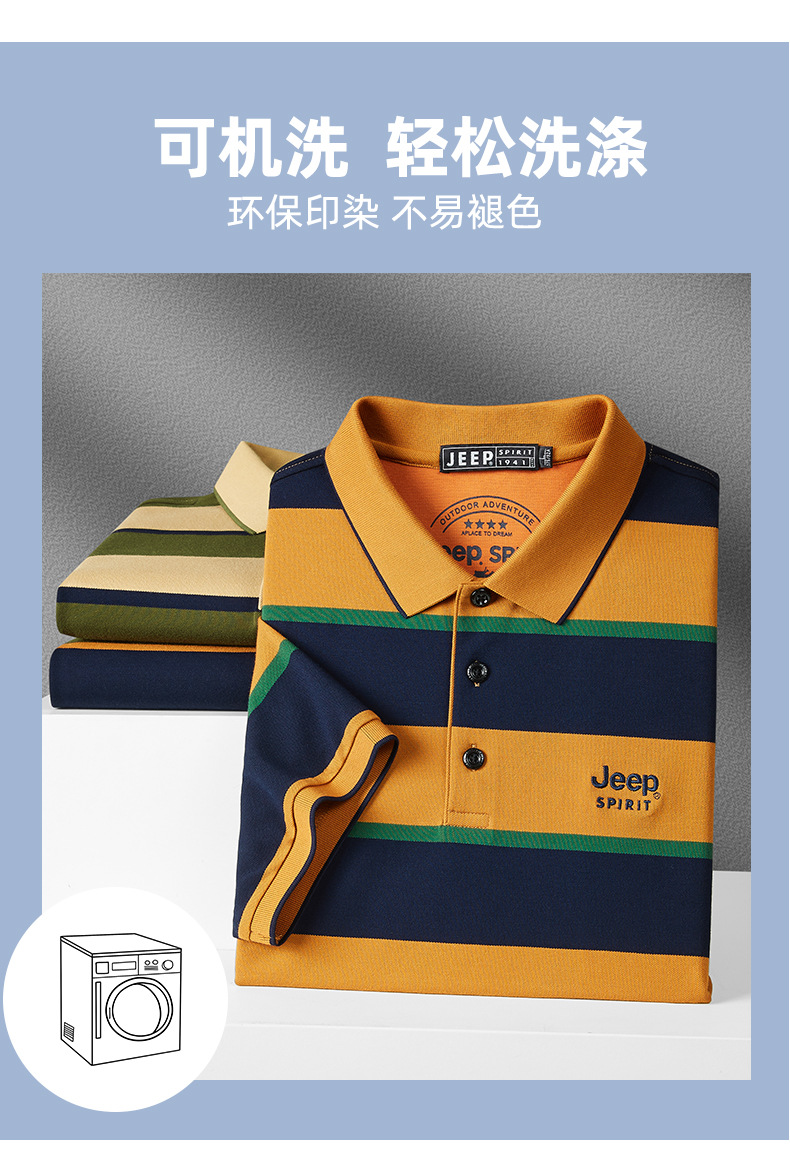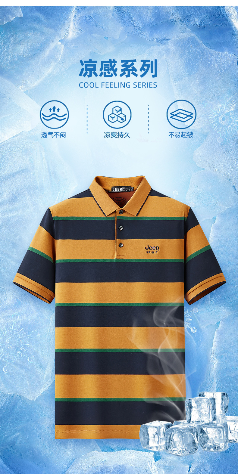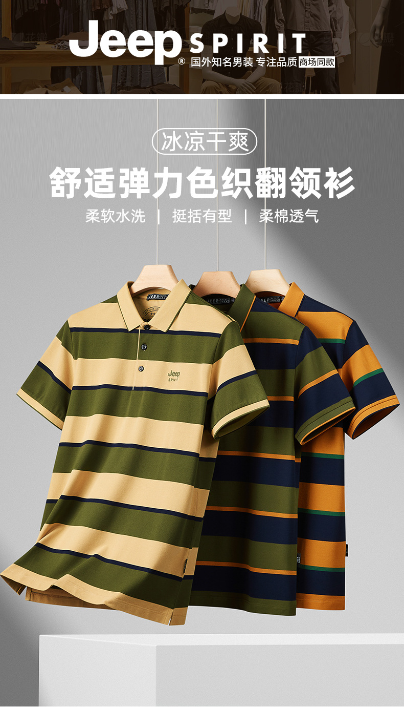 JEEP SPIRIT夏季新款色织翻领速干短T恤清爽透气抗皱柔软亲肤男休闲短袖HY-PS68007