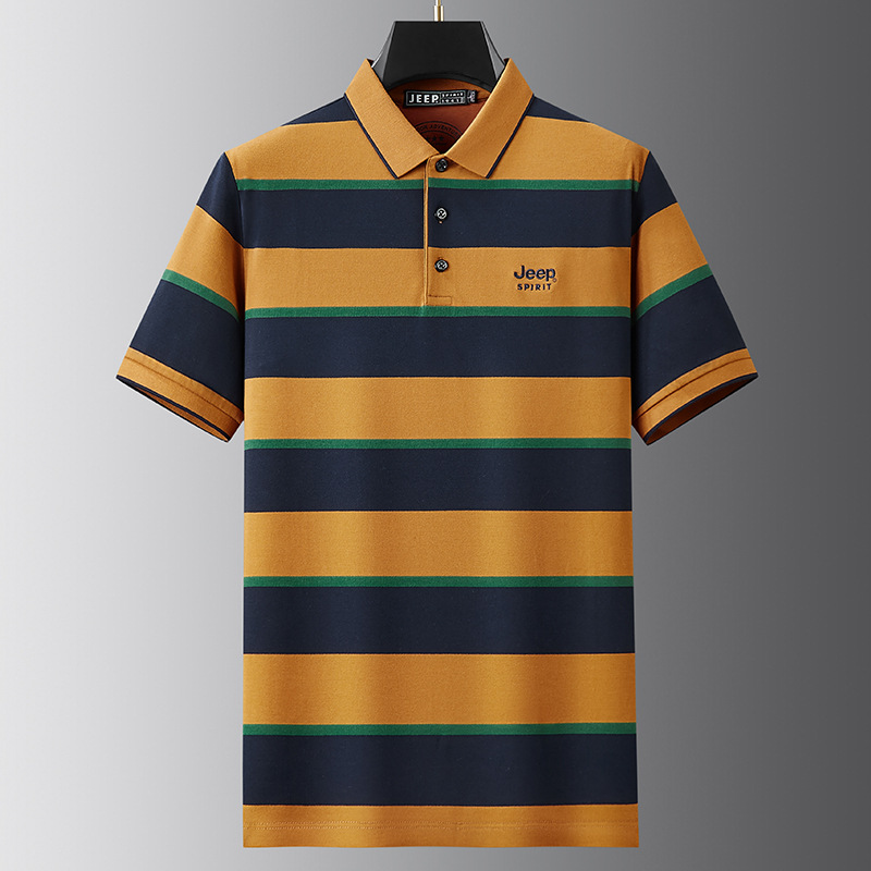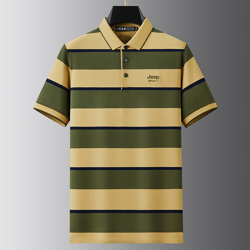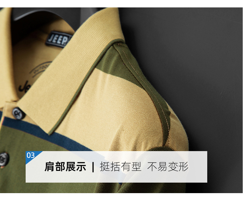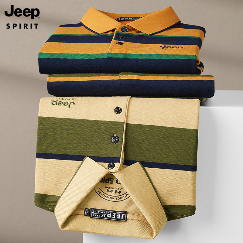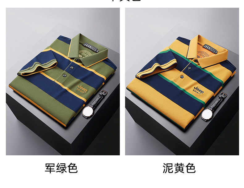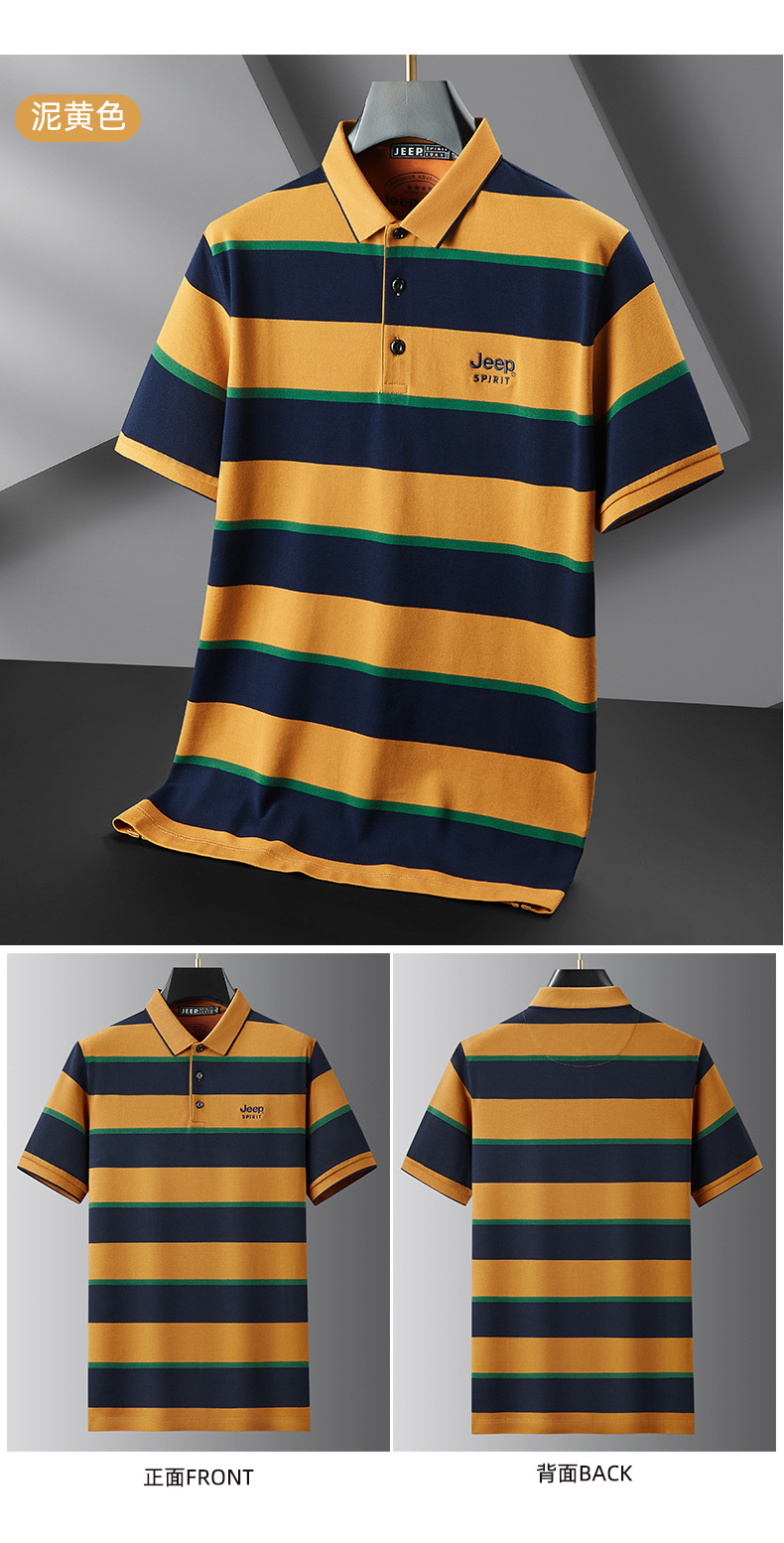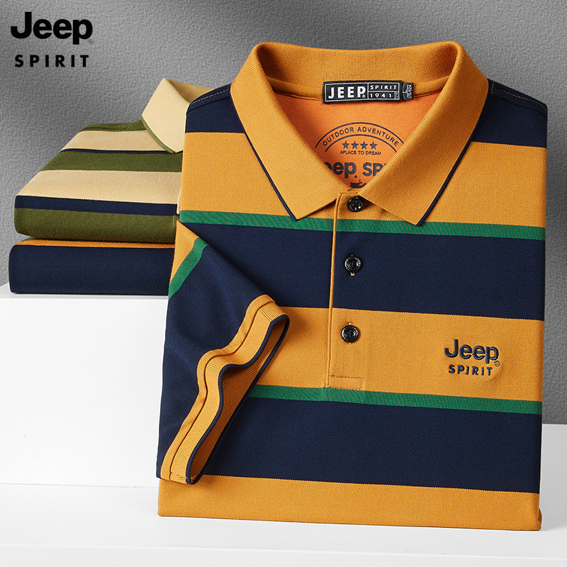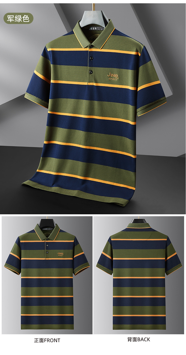 JEEP SPIRIT夏季新款色织翻领速干短T恤清爽透气抗皱柔软亲肤男休闲短袖HY-PS68007