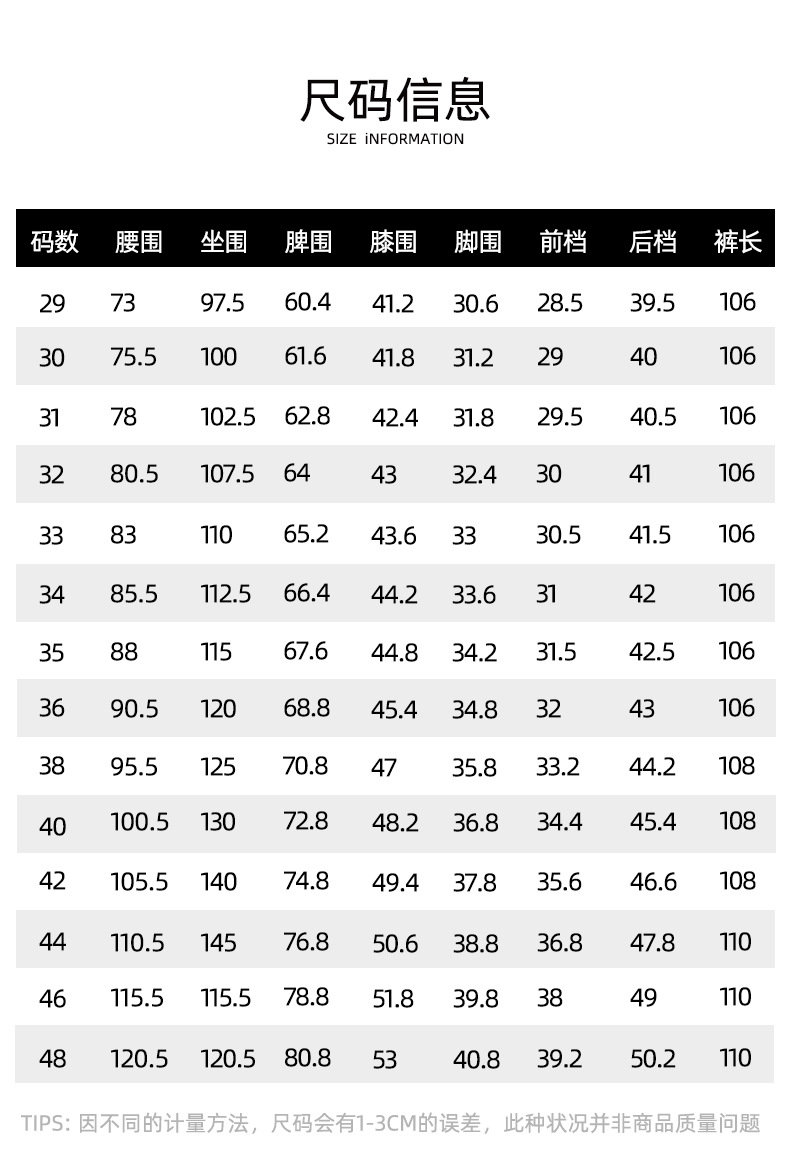 规格 :30 31 32 33 34 35 36 38 40 42 44
