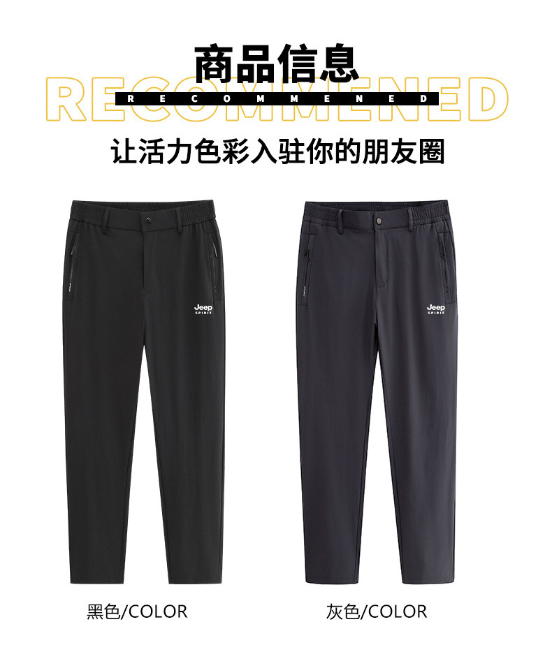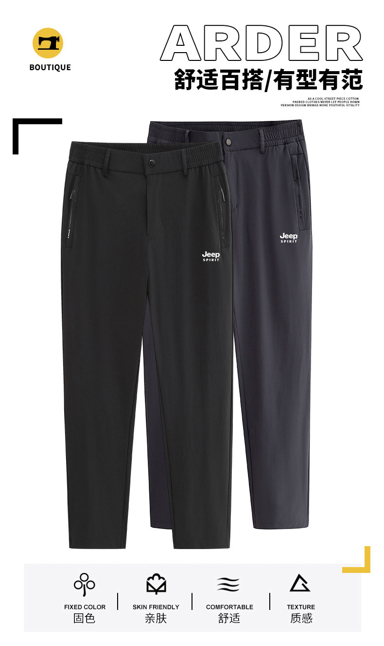 JEEP SPIRIT夏季新款四面弹裤袢腰长裤宽松直筒透气柔软休闲商务运动卫裤WT-8812