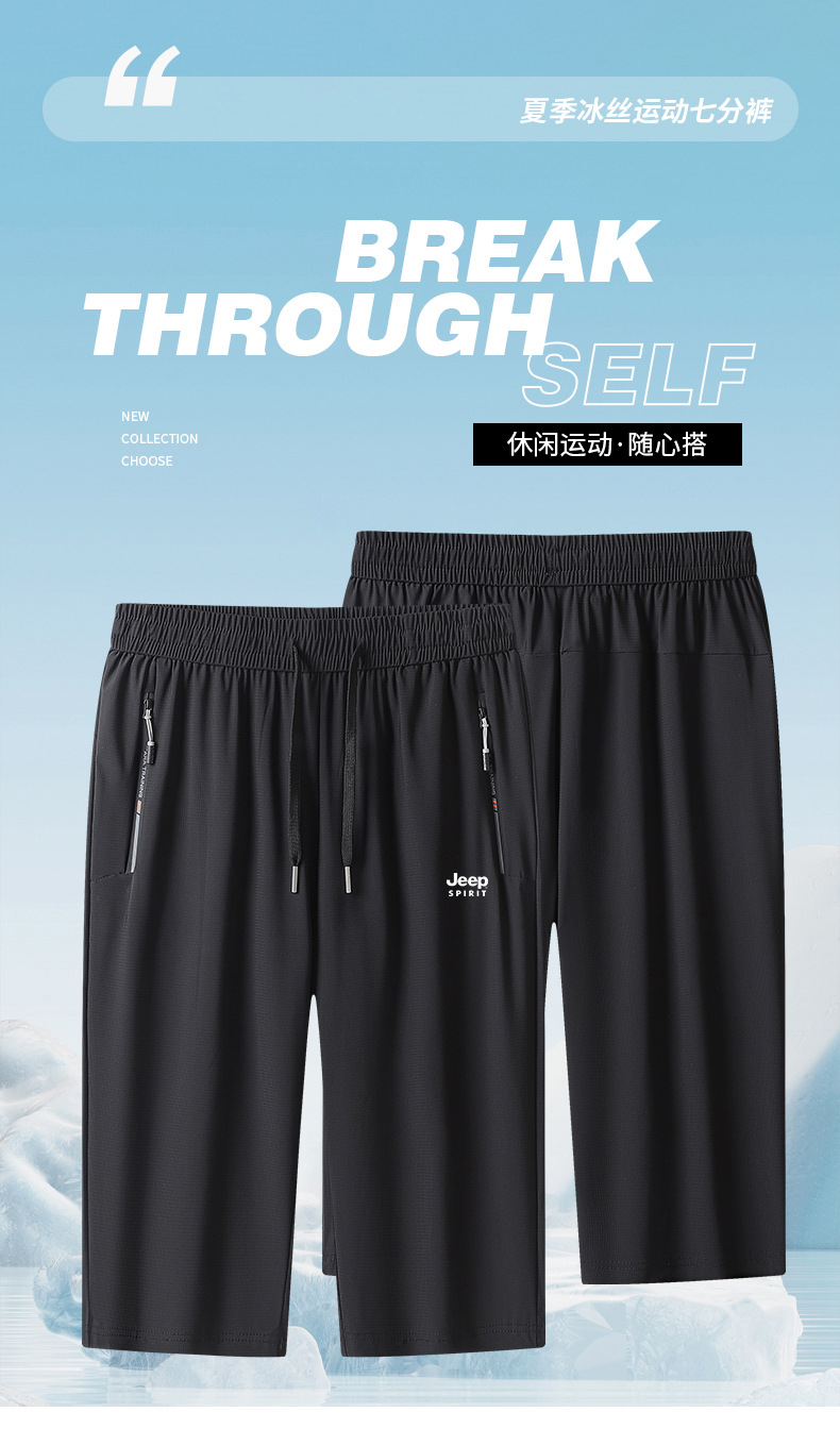 JEEP SPIRIT夏季新款男士冰丝运动裤轻薄宽松透气散热速干柔软亲肤短裤 JP-6650