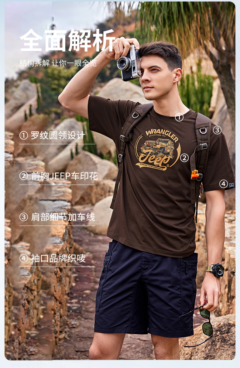 JEEP 夏季新款男女短袖T恤衫休闲百搭吸湿速干防水防污舒适干爽J422074542