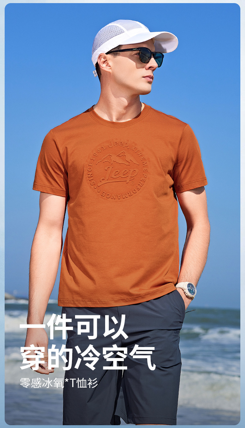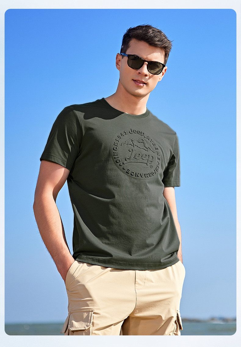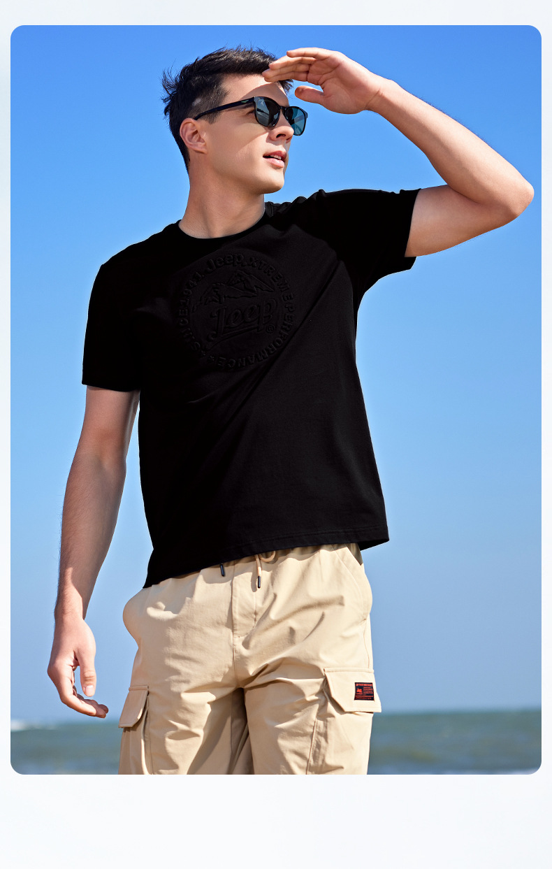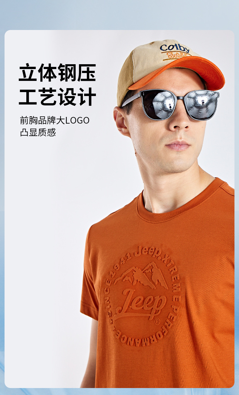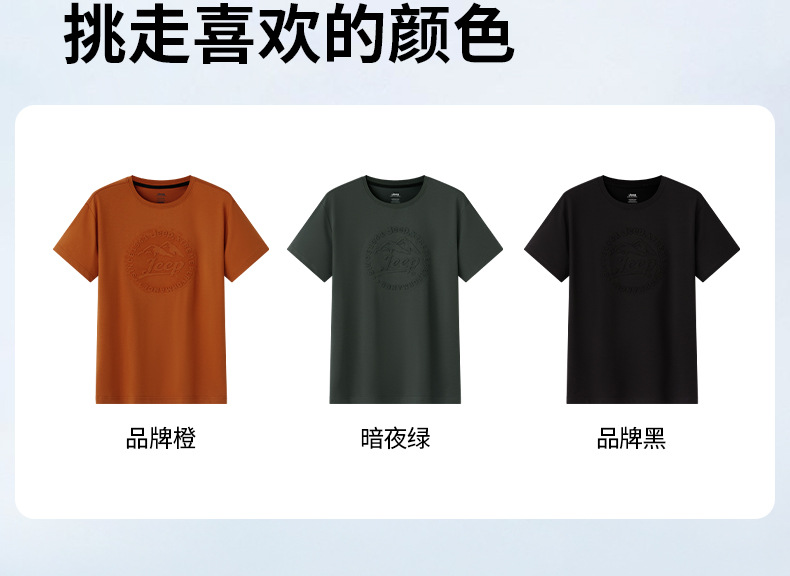 JEEP 夏季新款男式短袖T恤衫休闲百搭吸湿速干防水防污舒适干爽J422074564