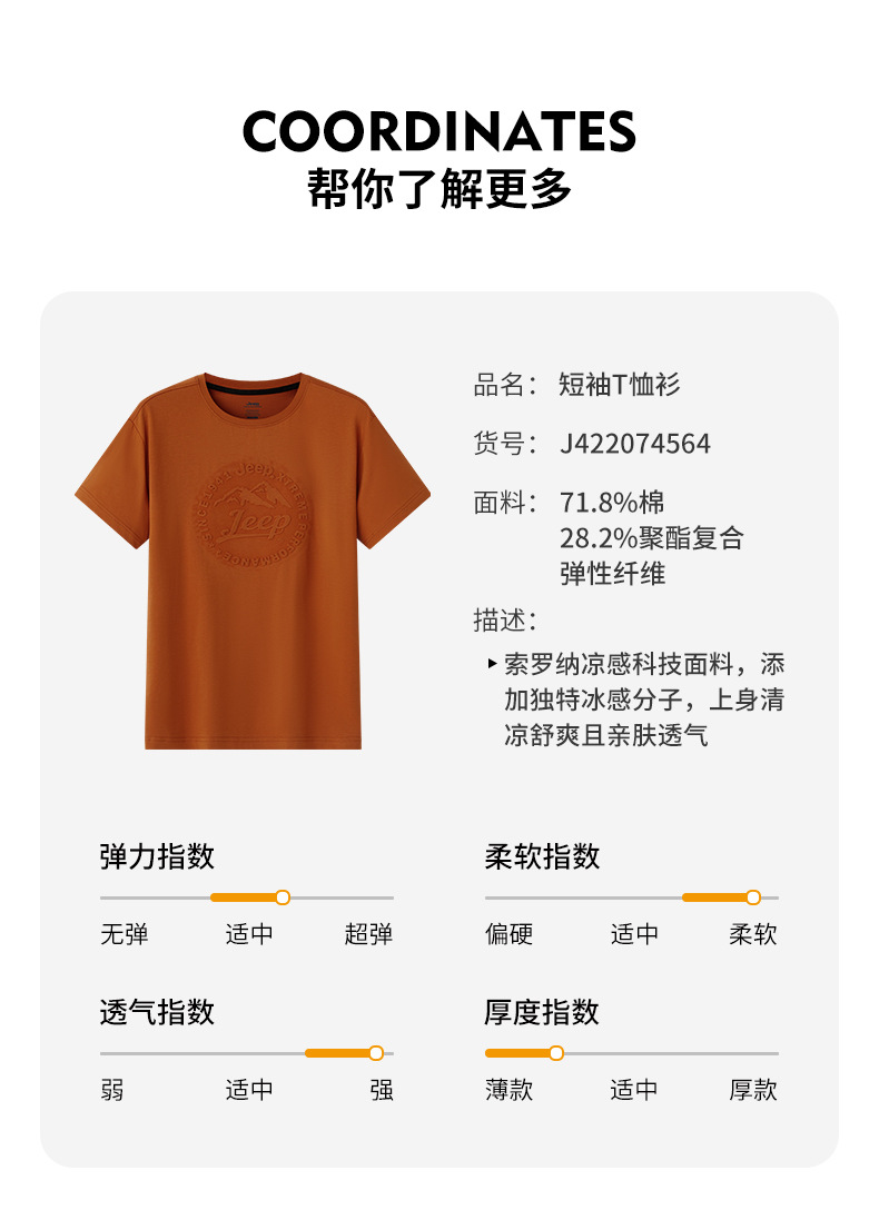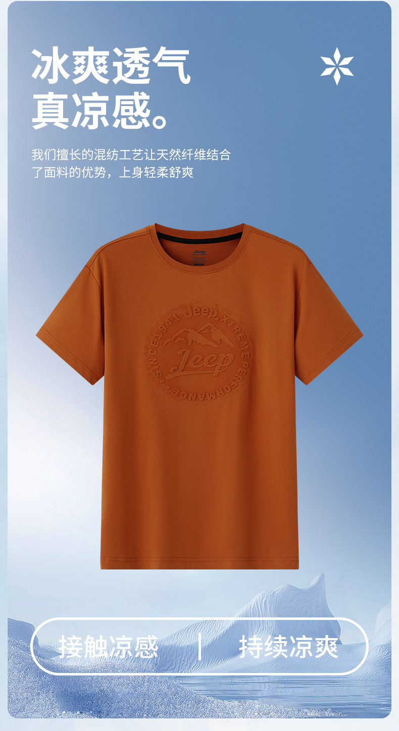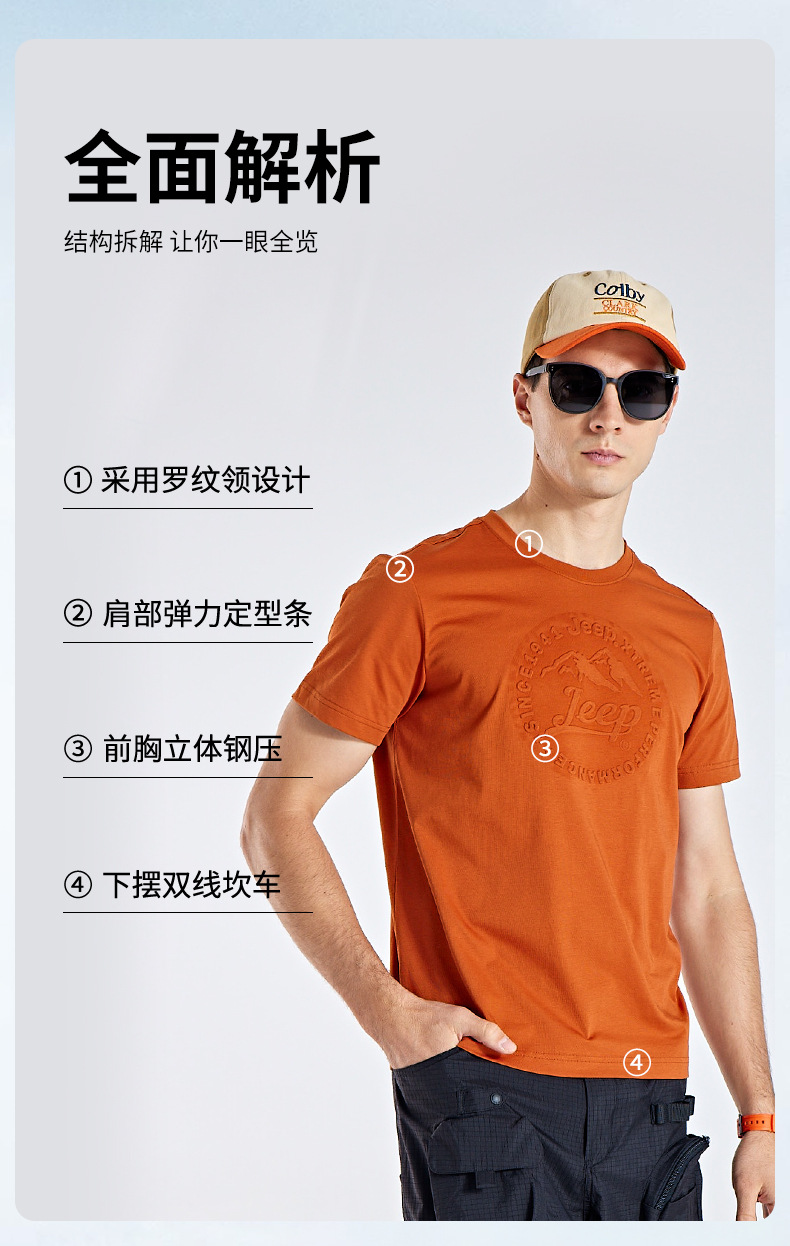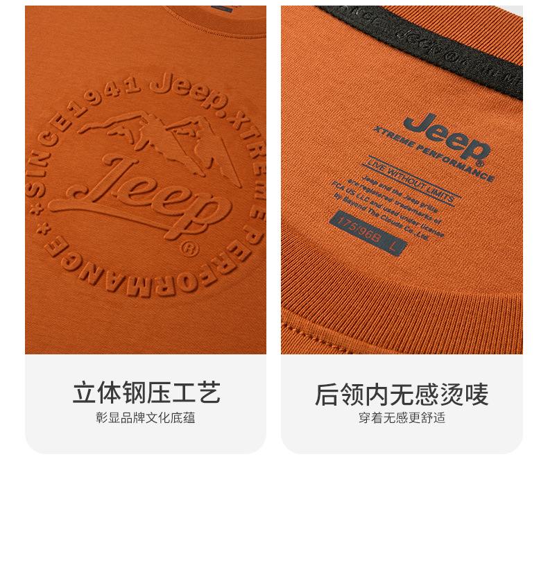 JEEP 夏季新款男式短袖T恤衫休闲百搭吸湿速干防水防污舒适干爽J422074564