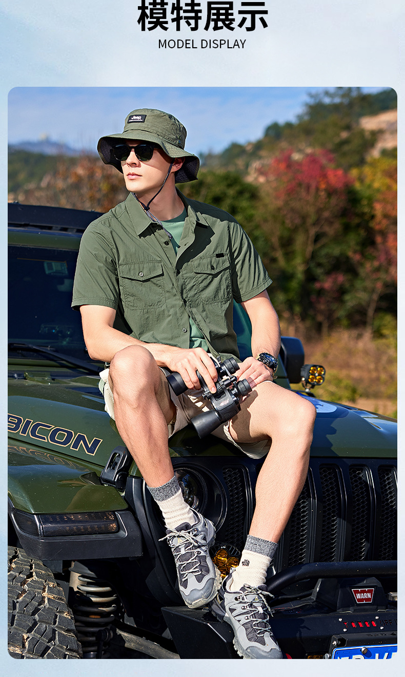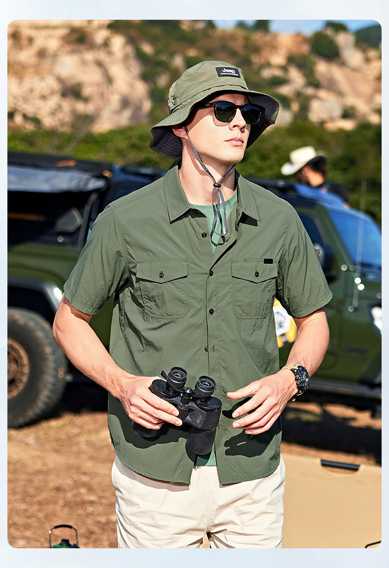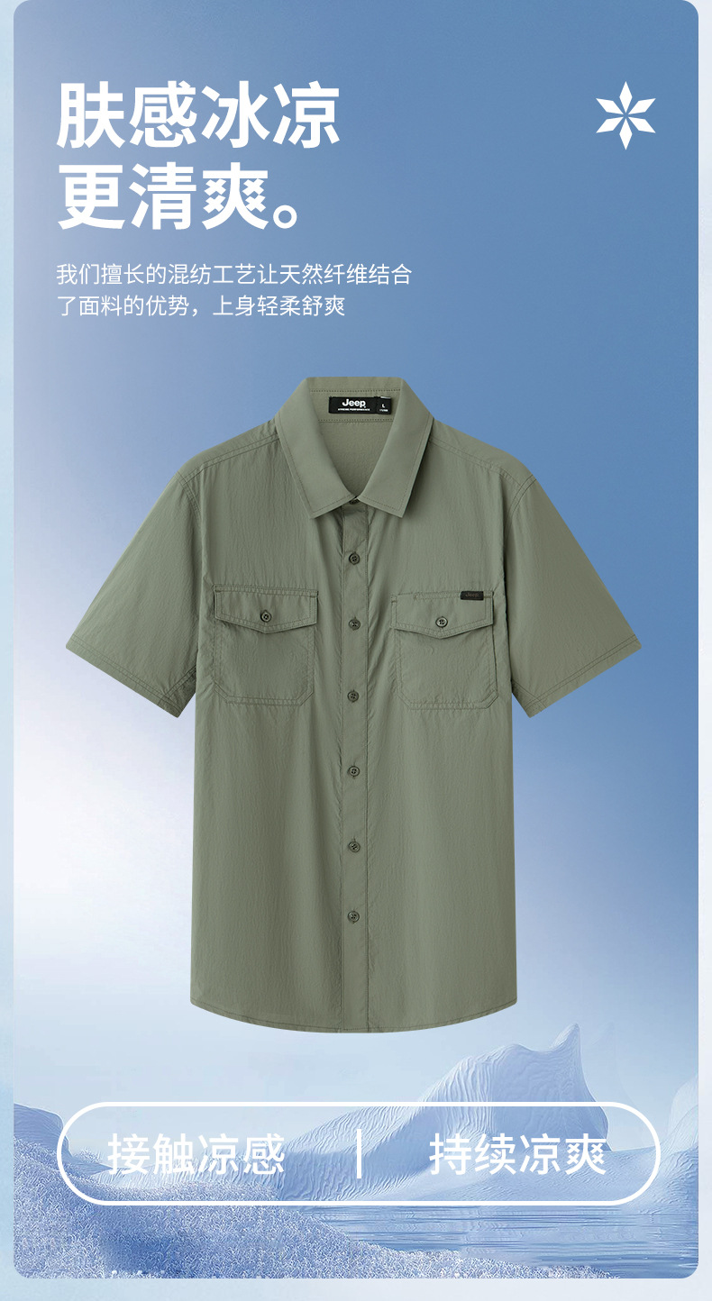JEEP 夏季新款男式短袖衬衫休闲百搭吸湿速干防水防污舒适干爽透气J422094672