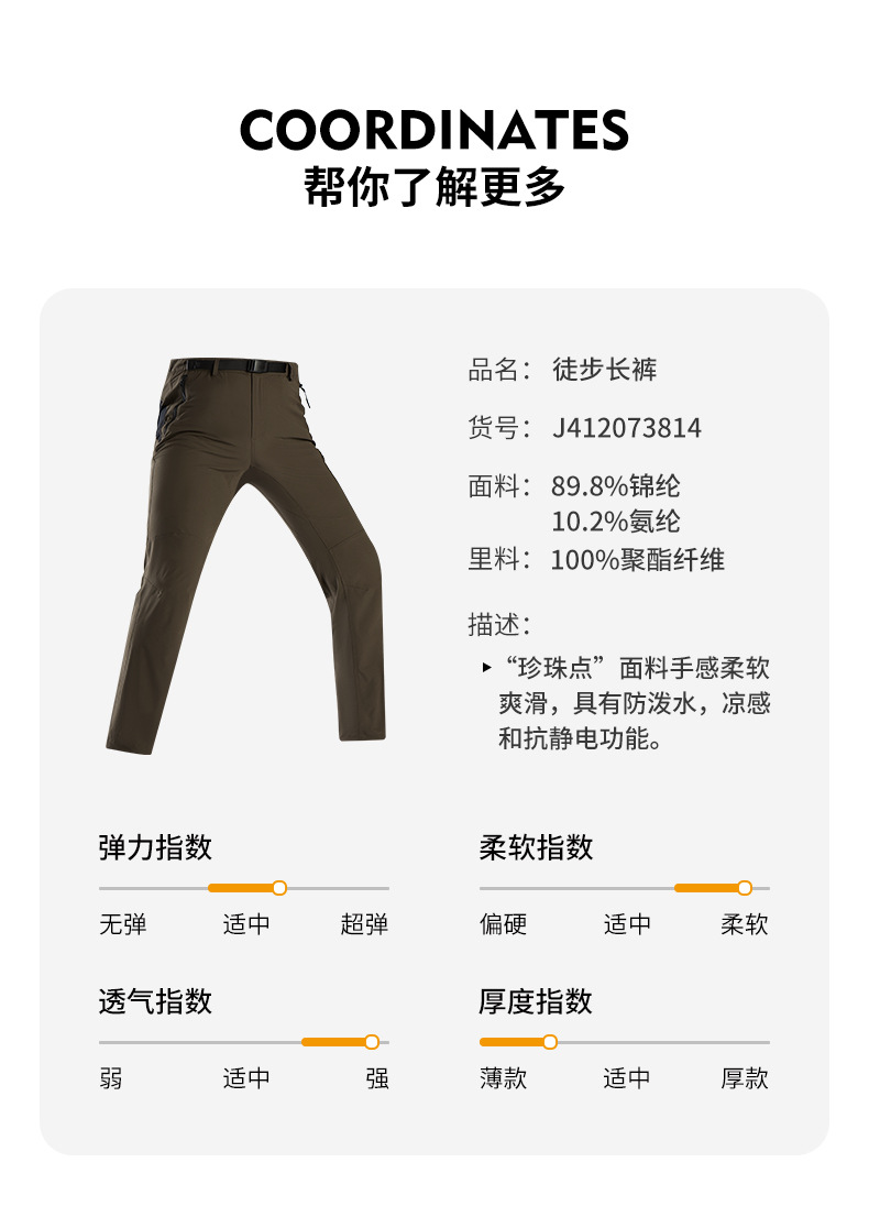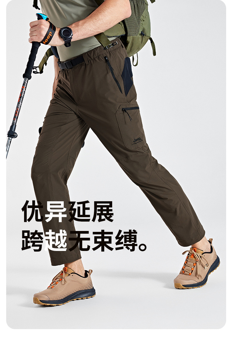 JEEP 夏季新款男式徒步长裤防水透气清凉干爽轻薄柔软亲肤休闲长裤J412073814