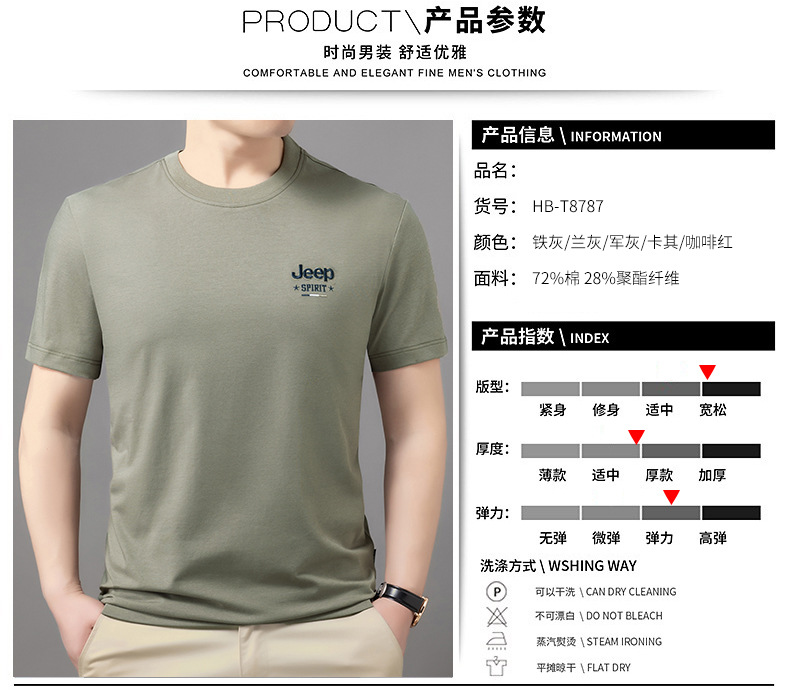 JEEP SPIRIT夏季新款男式休闲POLO衫简约潮流时尚百搭柔软舒适吸湿透气 HB-T8787