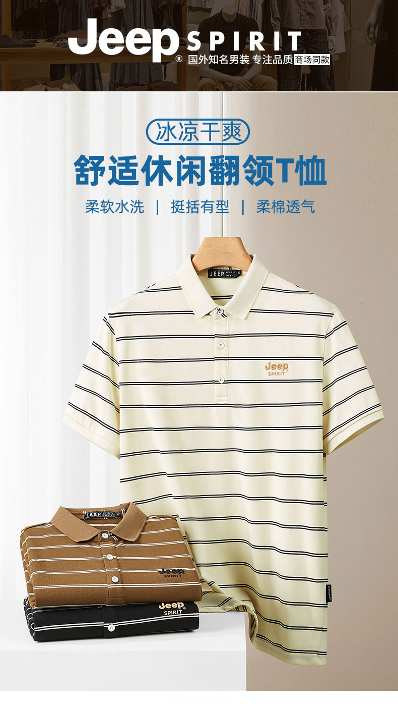JEEP SPIRIT夏季新款舒适休闲翻领T恤干爽透气柔软亲肤吸湿速干休闲百搭HY-PS68028