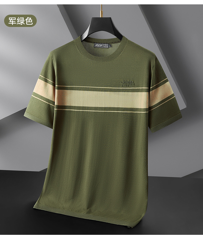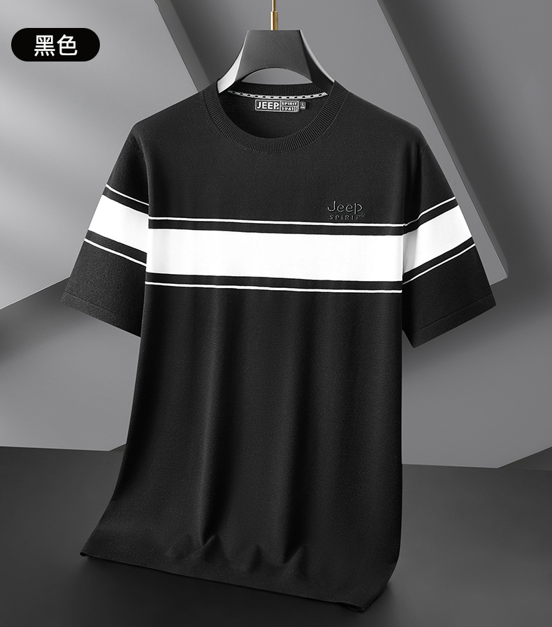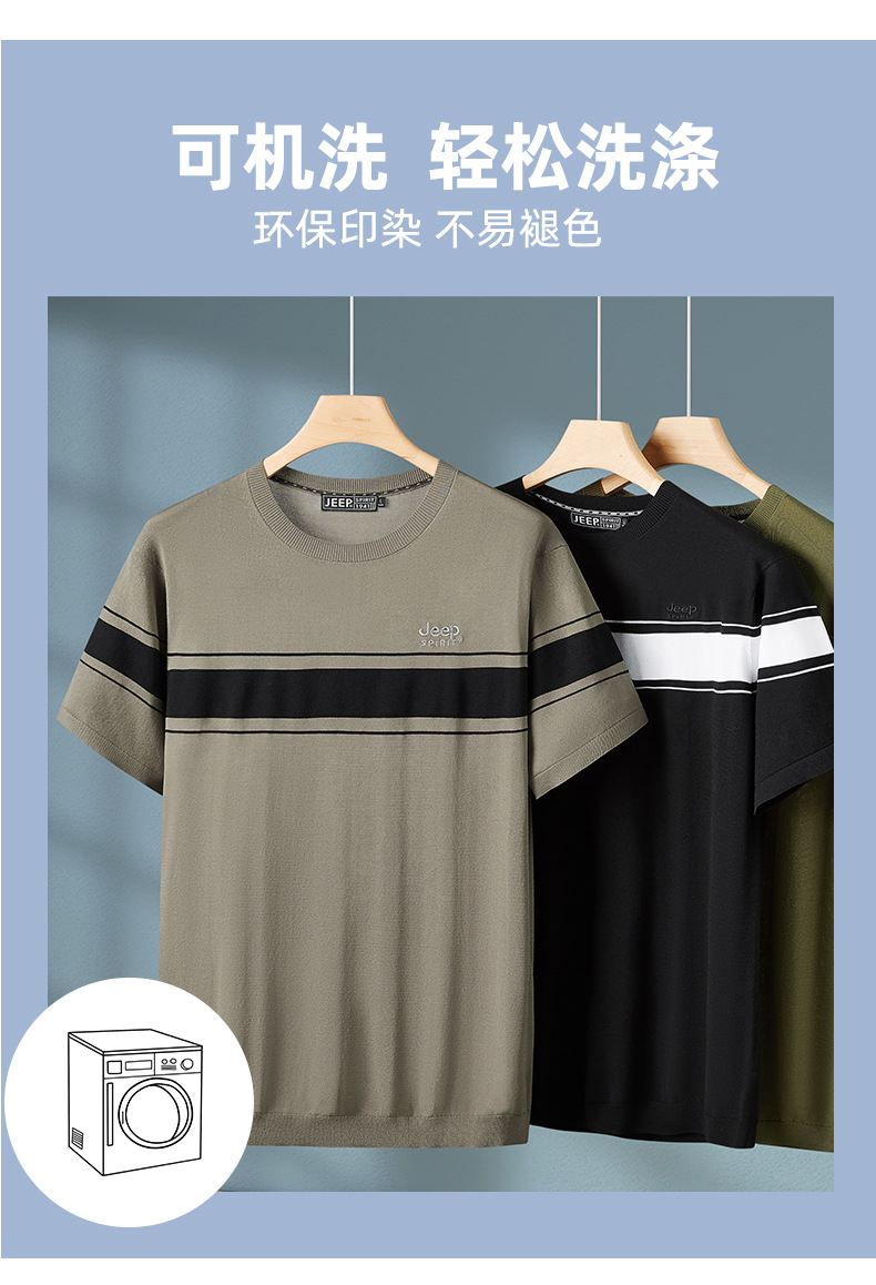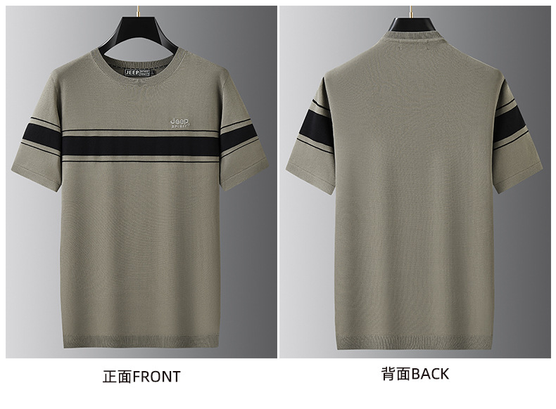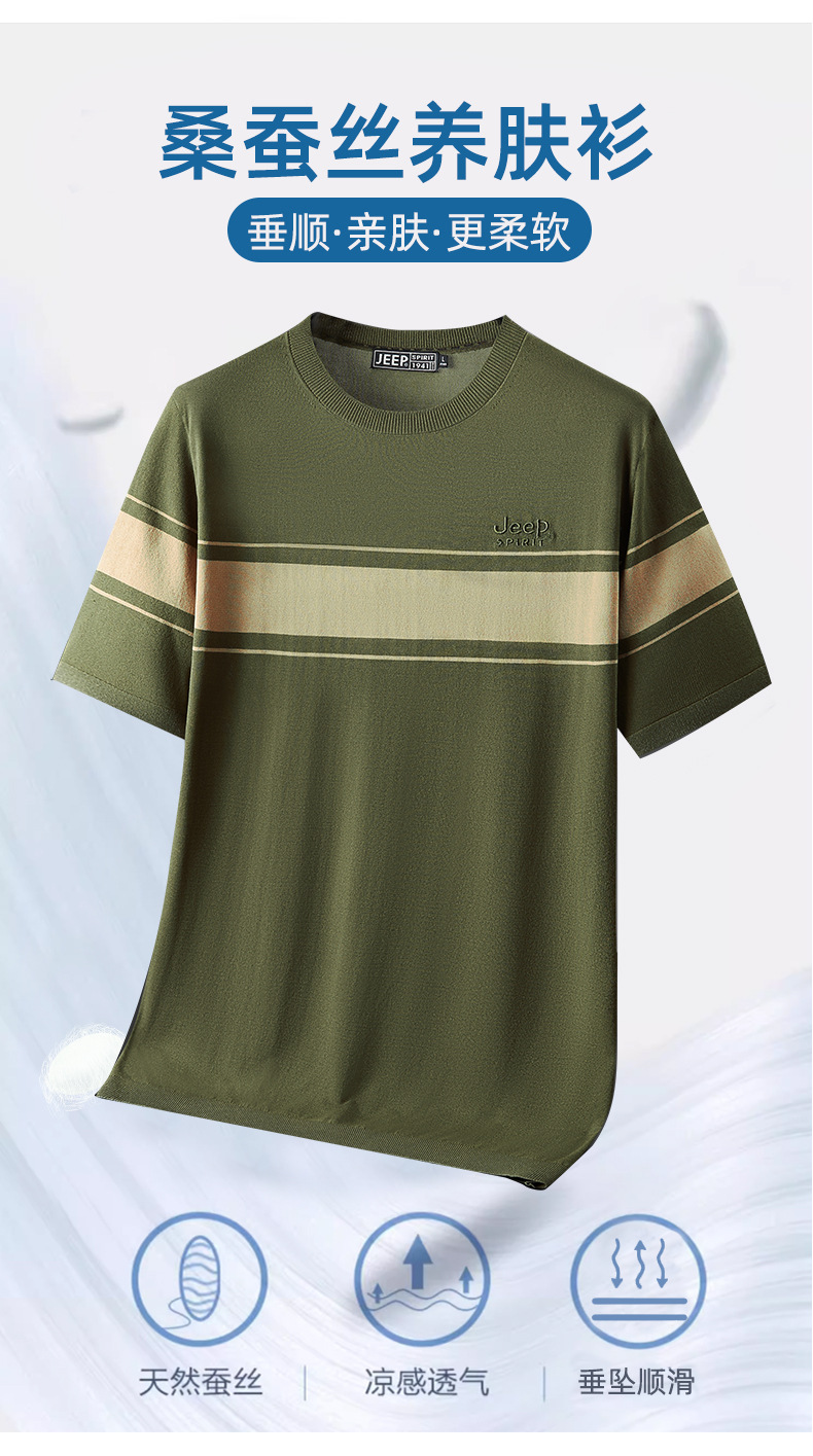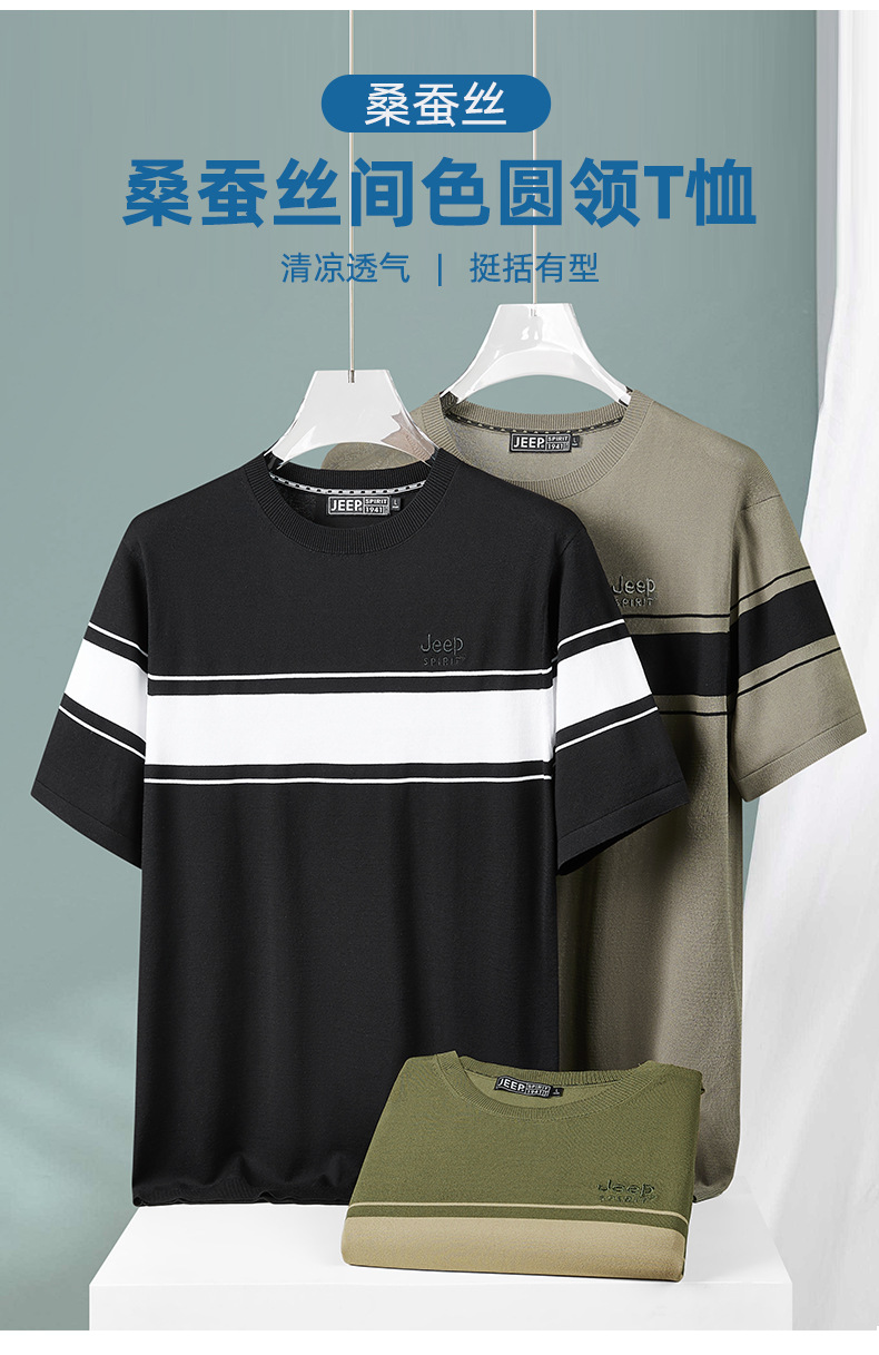 JEEP SPIRIT夏季新款男式桑蚕丝间色圆领T恤干爽透气柔软亲肤吸湿速干HY-TS68020