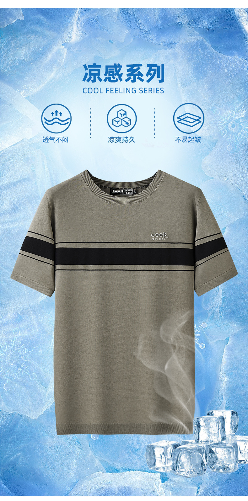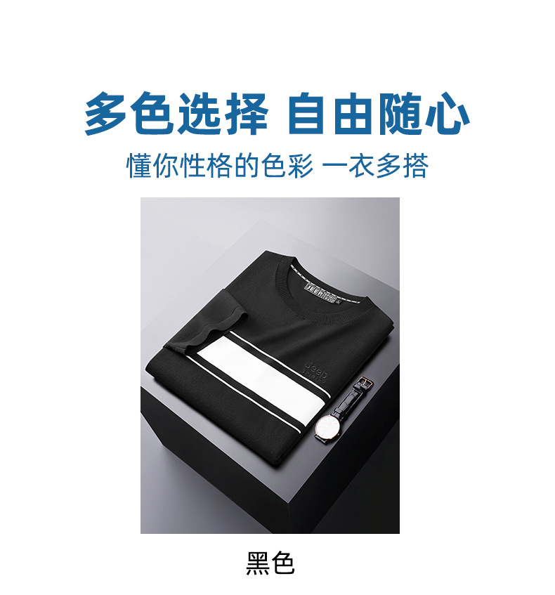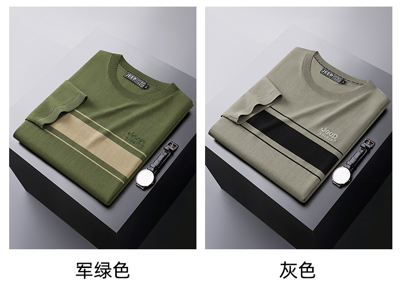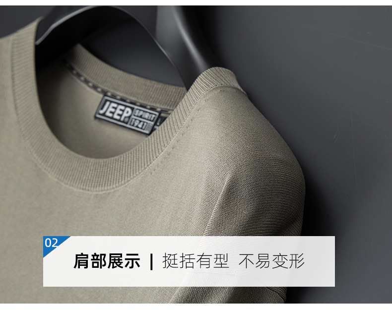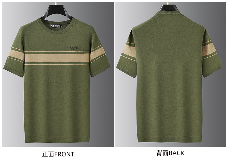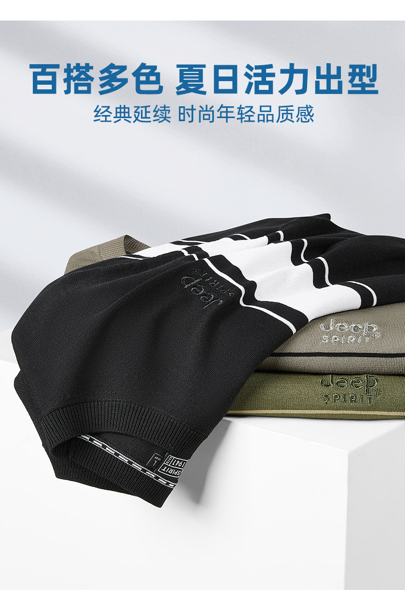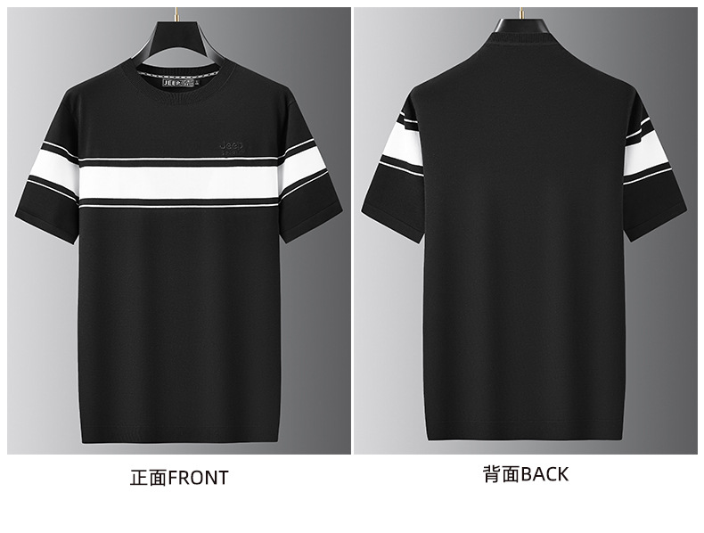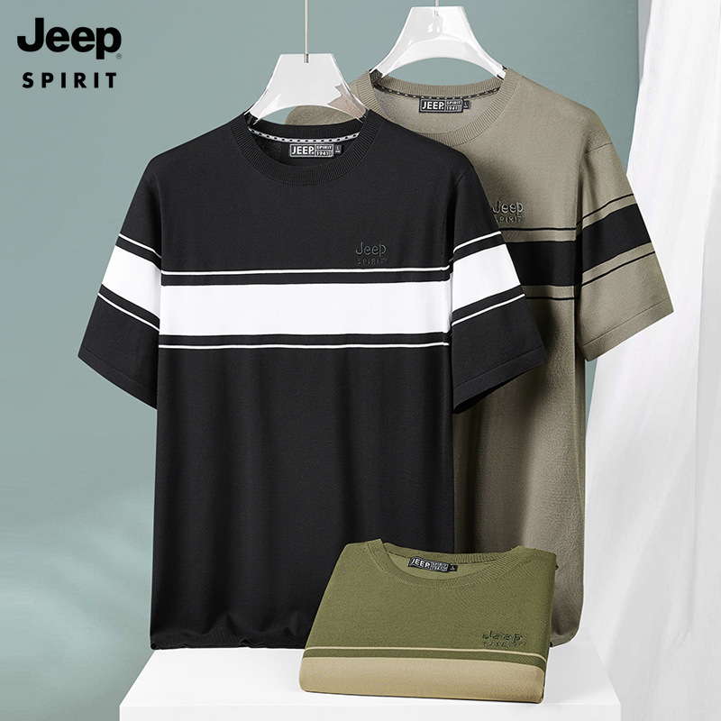JEEP SPIRIT夏季新款男式桑蚕丝间色圆领T恤干爽透气柔软亲肤吸湿速干HY-TS68020