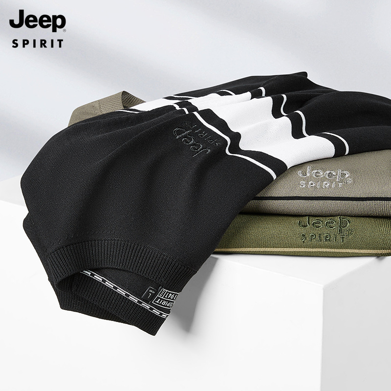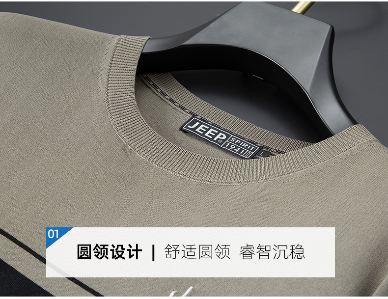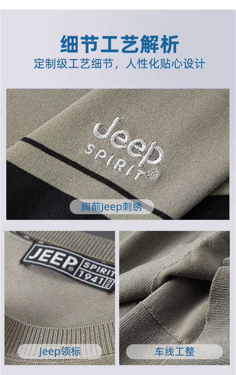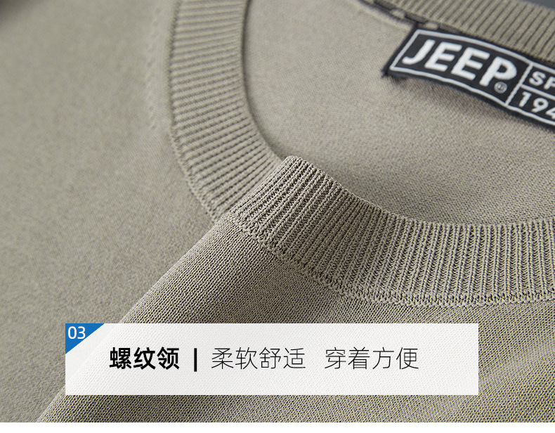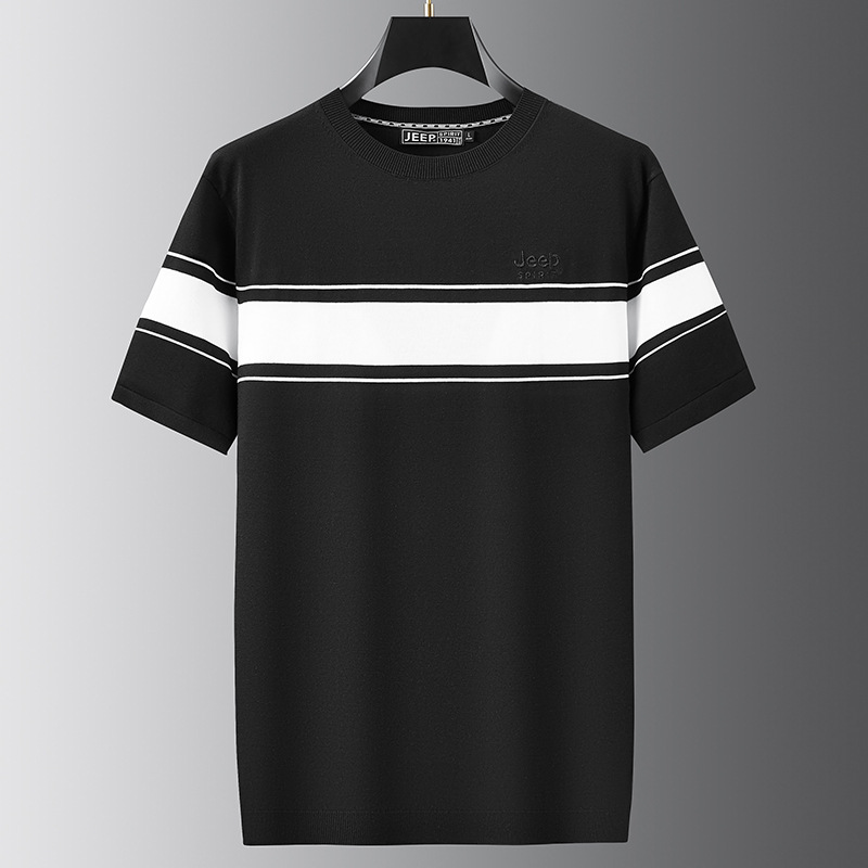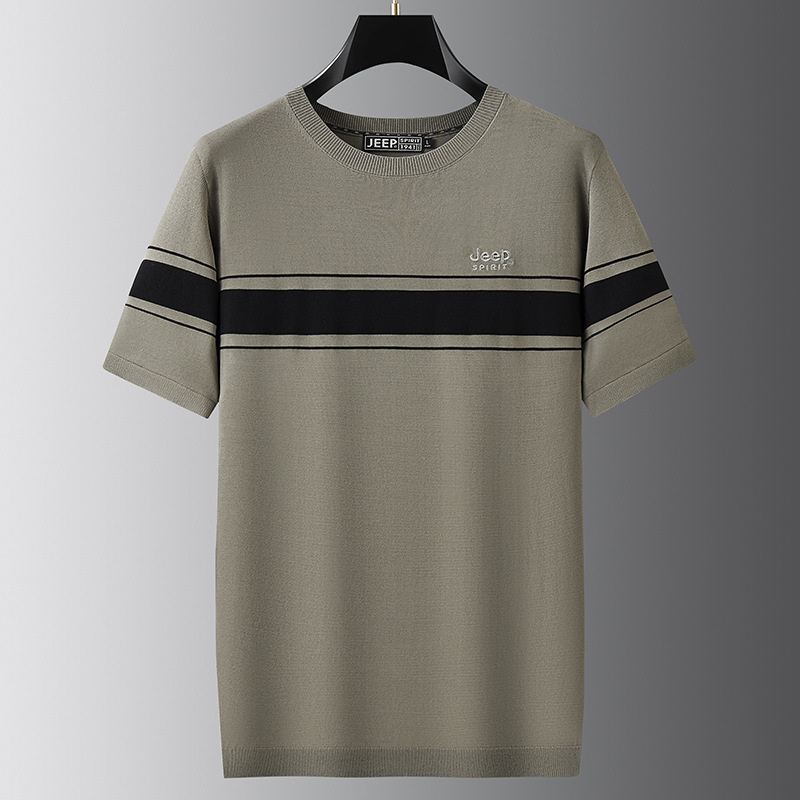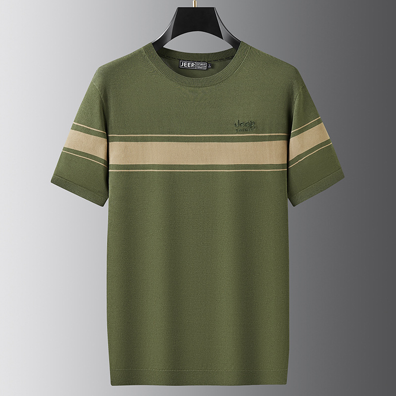 JEEP SPIRIT夏季新款男式桑蚕丝间色圆领T恤干爽透气柔软亲肤吸湿速干HY-TS68020