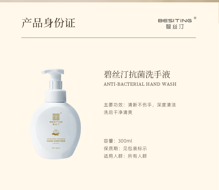 BESITING碧丝汀泡沫抑菌洗手液300ml