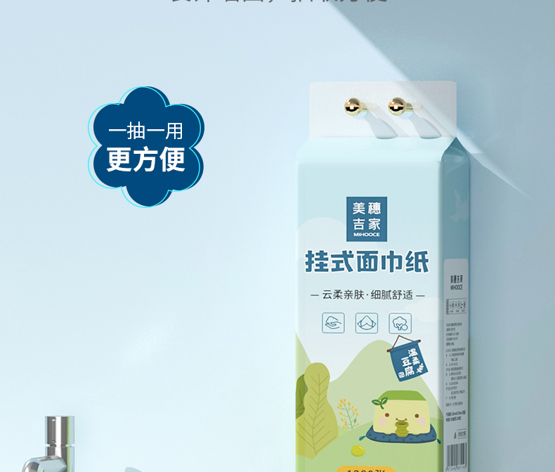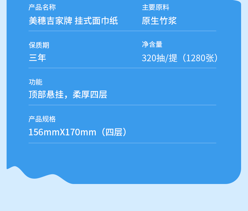 美穗吉家 挂式面巾纸 原生竹浆4层320抽*2提