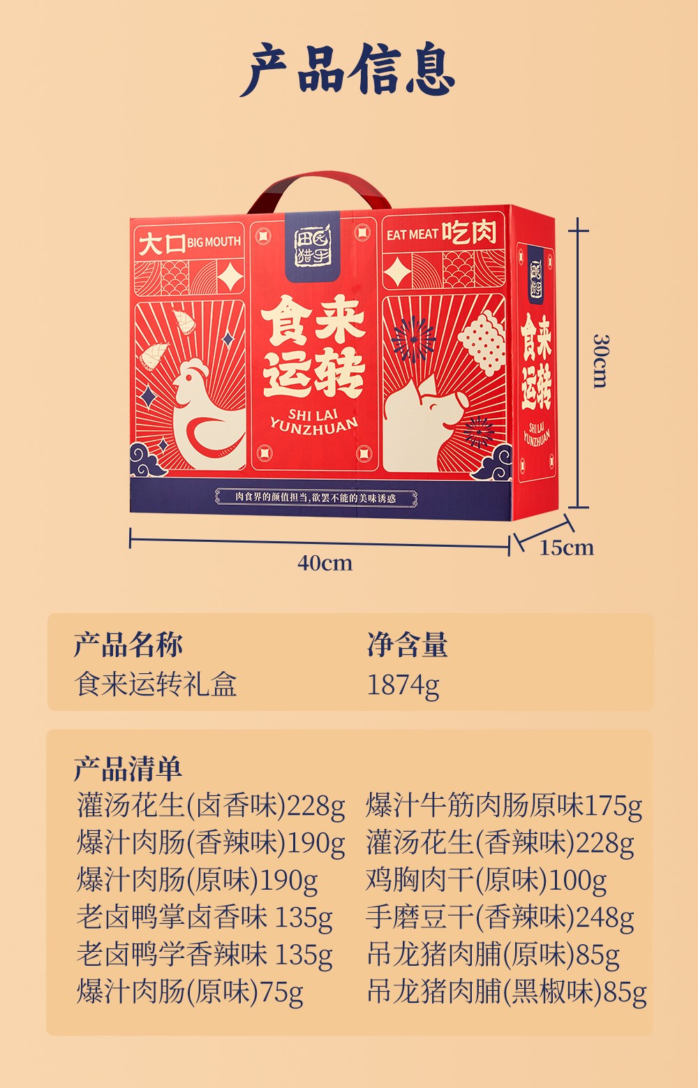田园猎手食来运转零食礼盒1874g休闲小吃卤味鸭掌猪肉脯解馋充饥