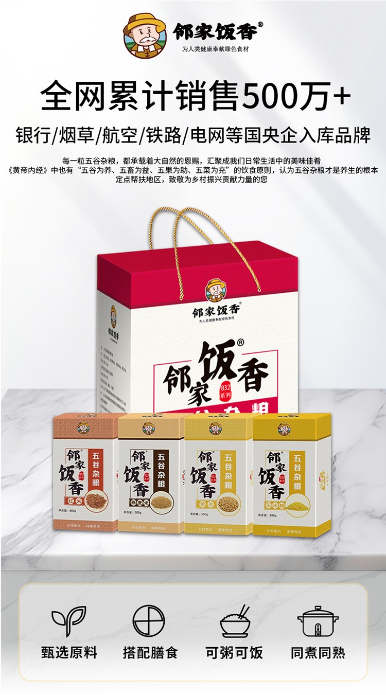 邻家饭香 杂粮礼盒 1.51kg/盒 乡村振兴 消费帮扶 832系列 内配【红米400g、玉米糁380g、燕麦米380g、黄豆350g】FP68