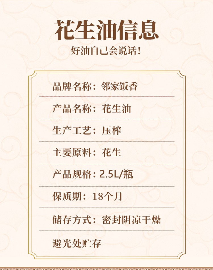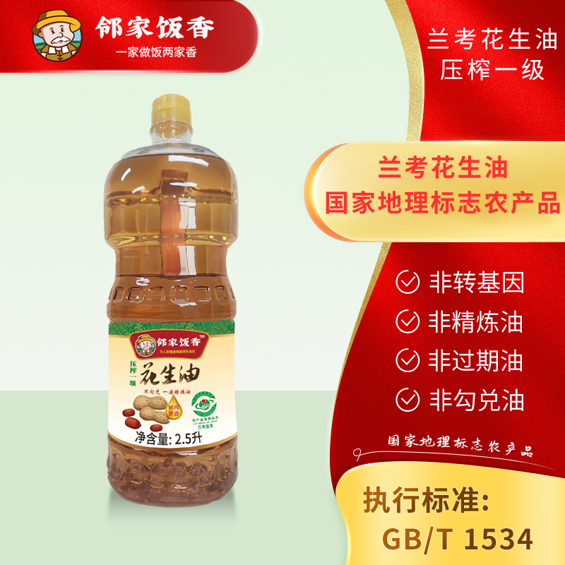 邻家饭香 压榨一级浓香花生油 地标兰考花生压榨 2.5L/瓶 LJFX141