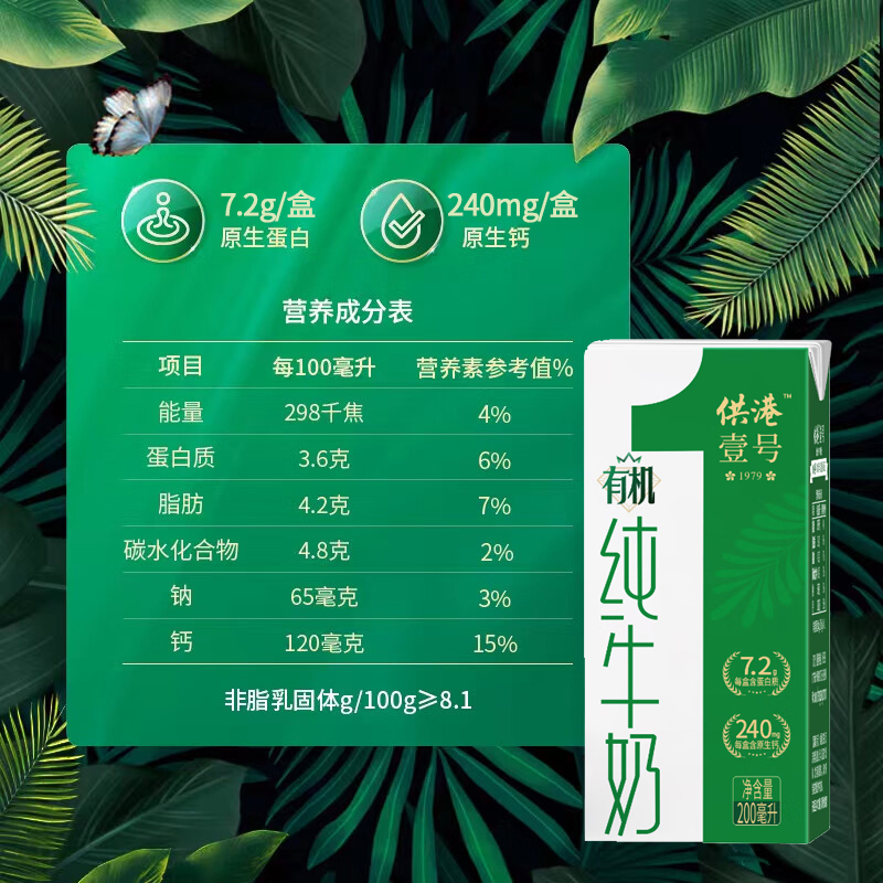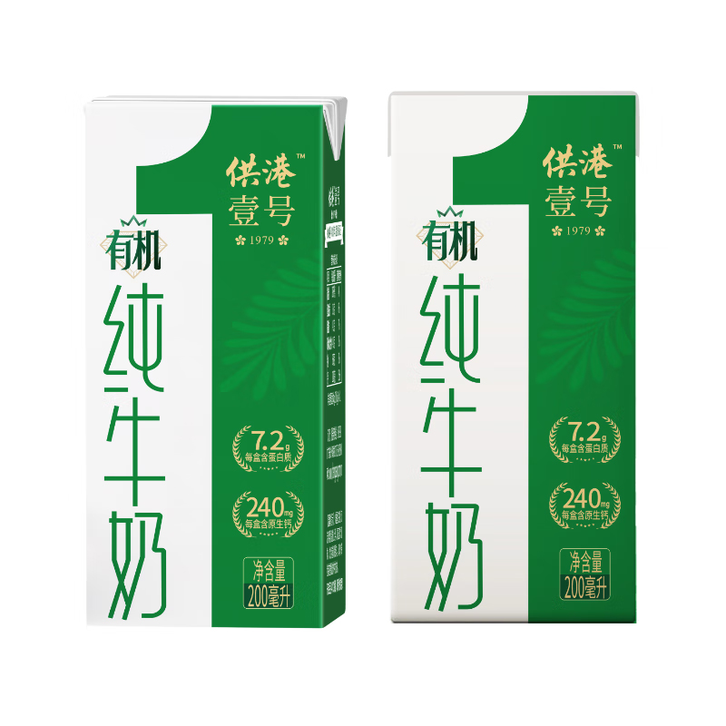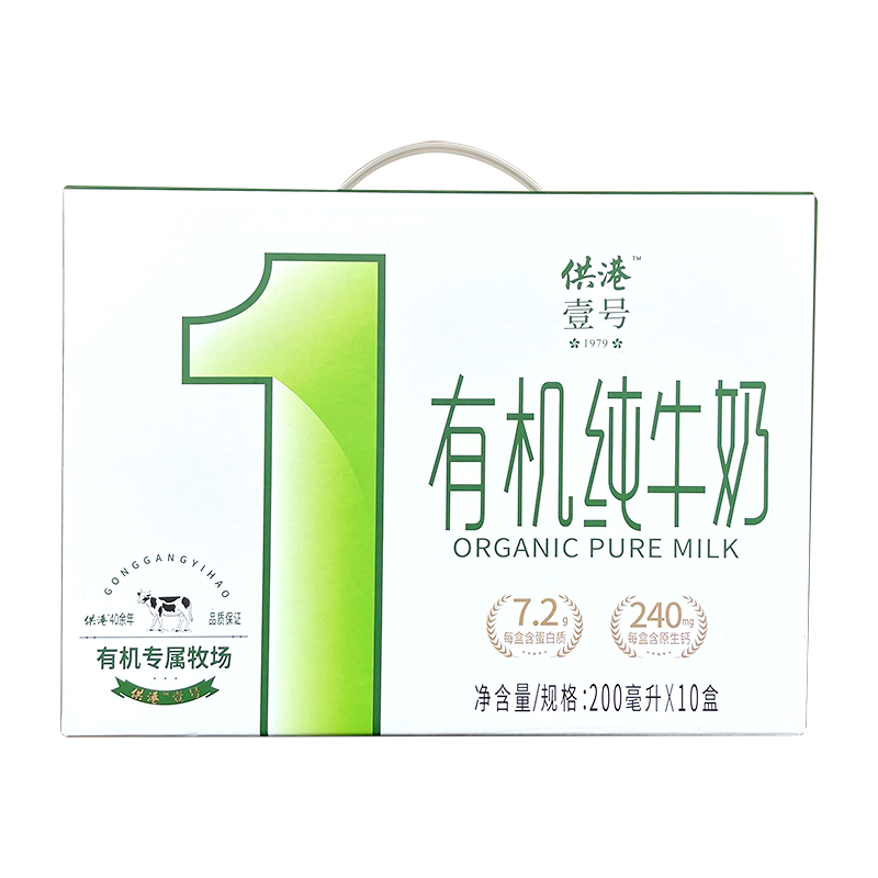 食品饮品>牛奶乳品>牛奶> 供港壹号有机纯牛奶 全程有机可追溯 3.6g乳蛋白营养早餐奶200ml*10盒