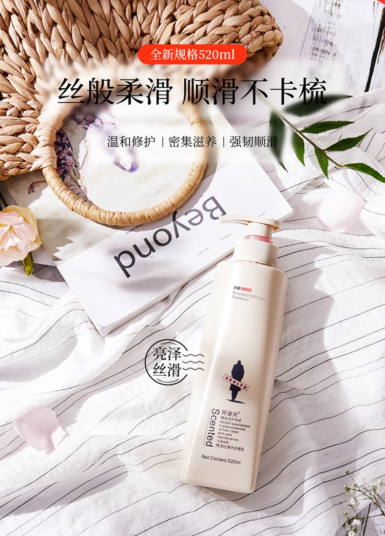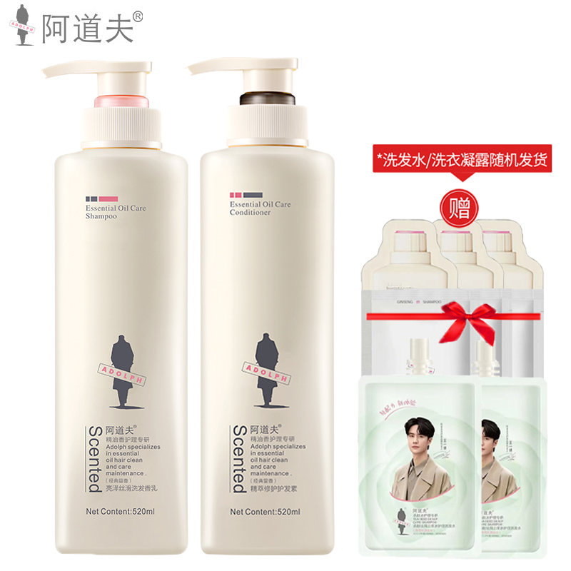 阿道夫洗发水沐浴露套装亮泽丝滑洗发水520ml+精萃修护护发素520ml+50ml*2+10ml*6(赠品香型随机发)