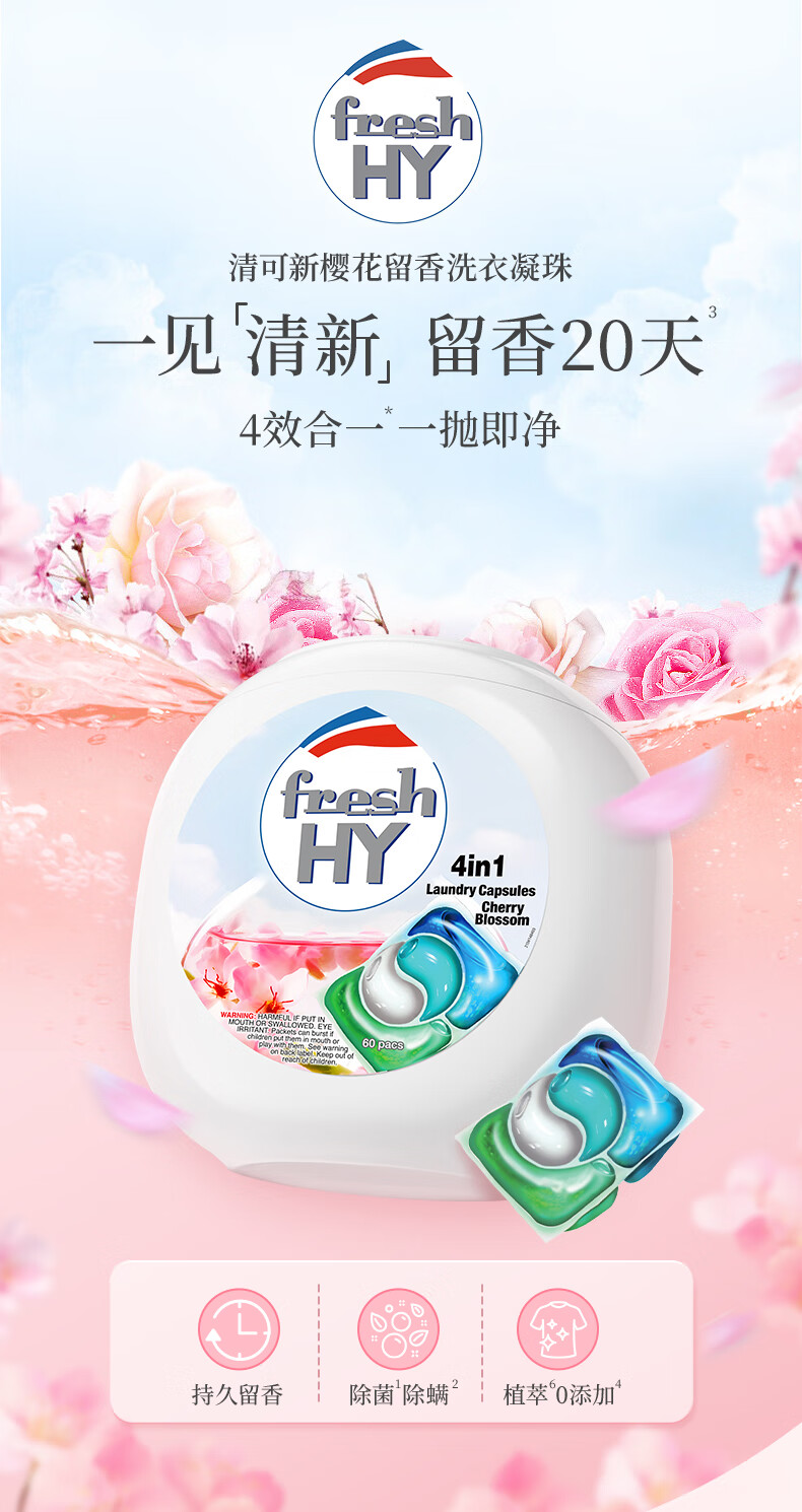 清可新4合1樱花留香洗衣凝珠10ml*60粒