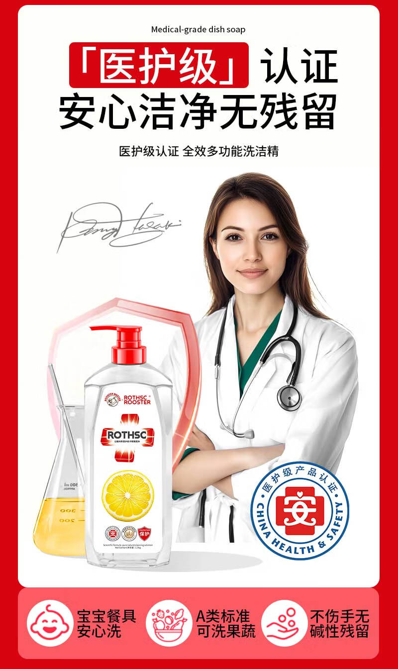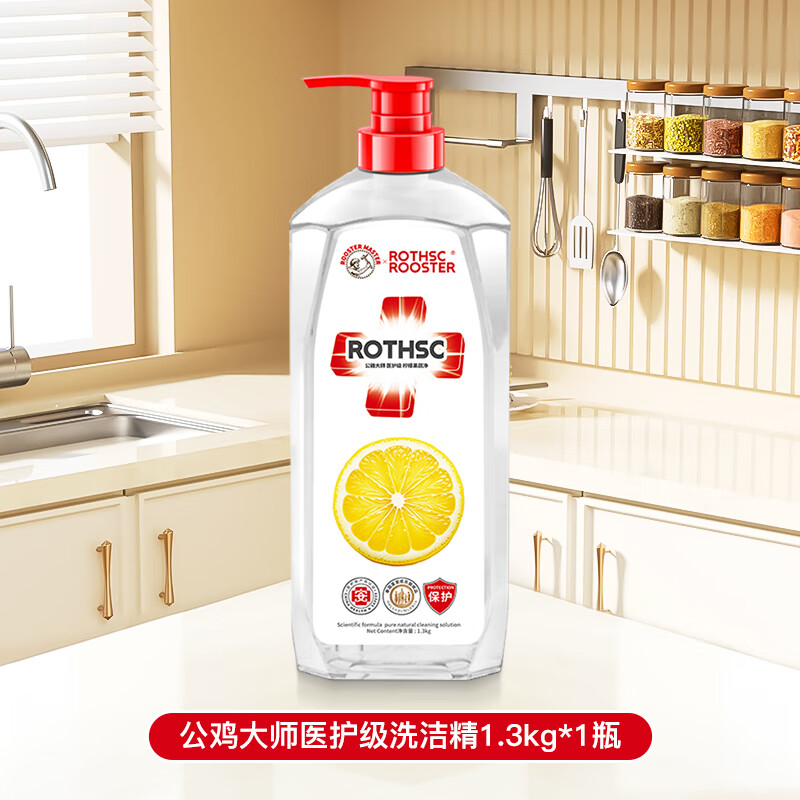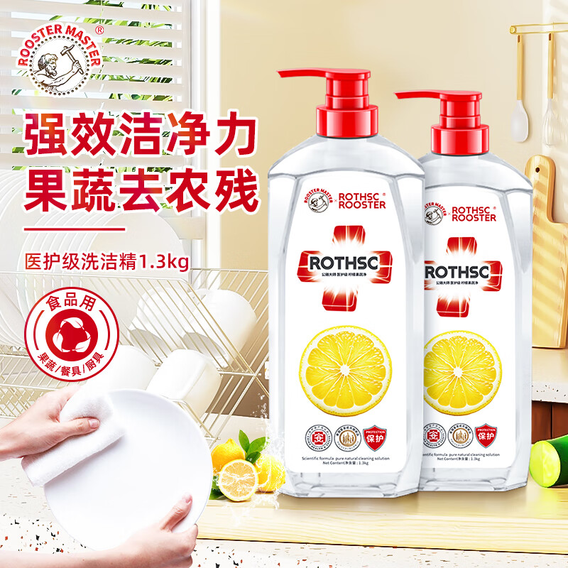 日用百货>家庭清洁>清洗剂> 公鸡大师医护级洗洁精 1.3kg*2