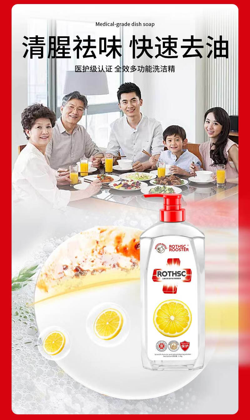 公鸡大师医护级洗洁精 1.3kg*2