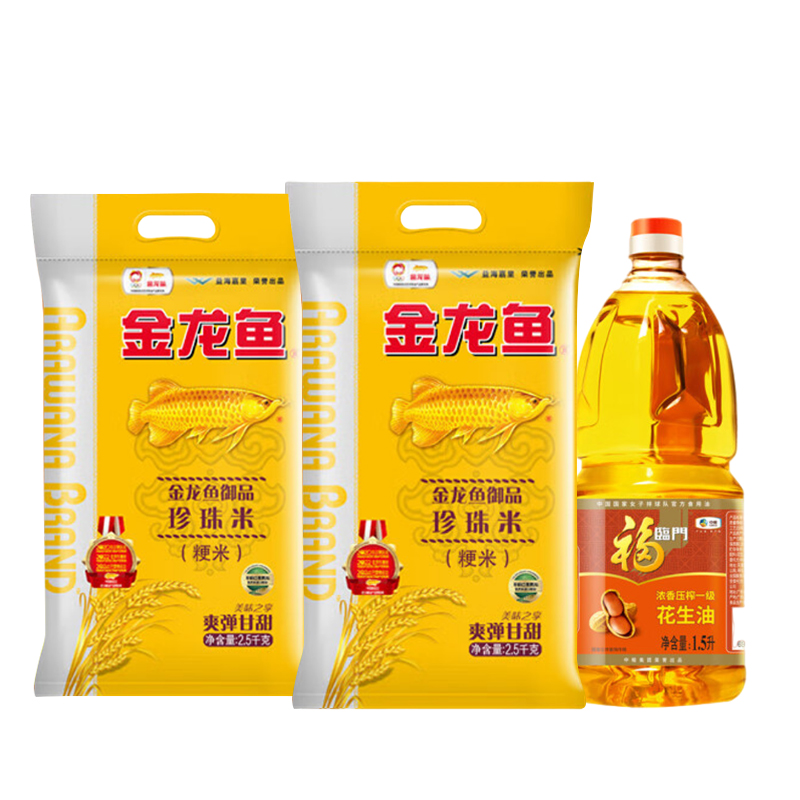 食品饮品>粮油副食>米面粮油>大米> 优选粮油套餐(中粮 福临门浓香压榨一级花生油1.5+金龙鱼御品珍珠米2.5KG*2)