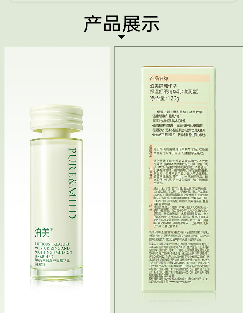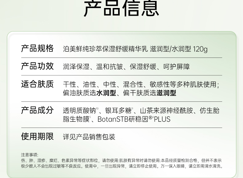 泊美 鲜纯珍萃保湿舒缓精华乳(滋润型) 120g