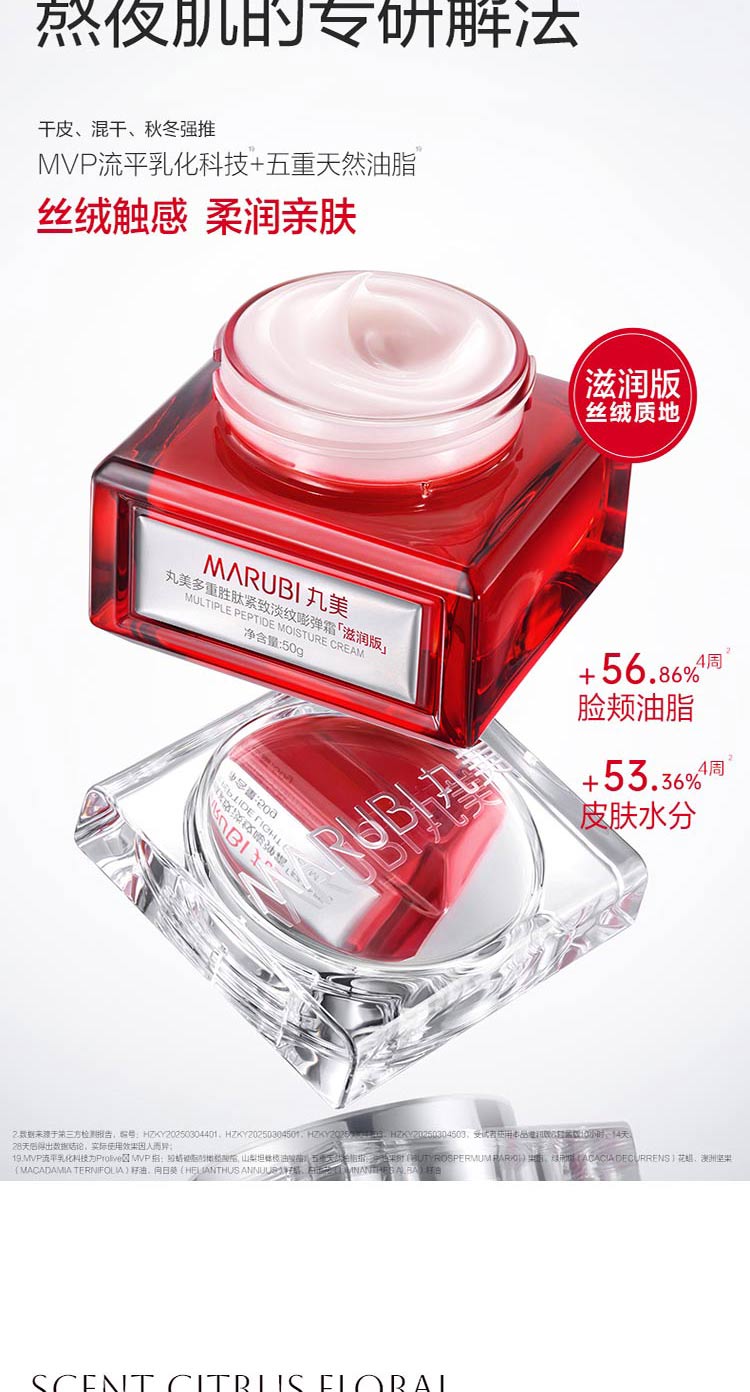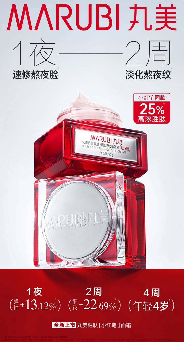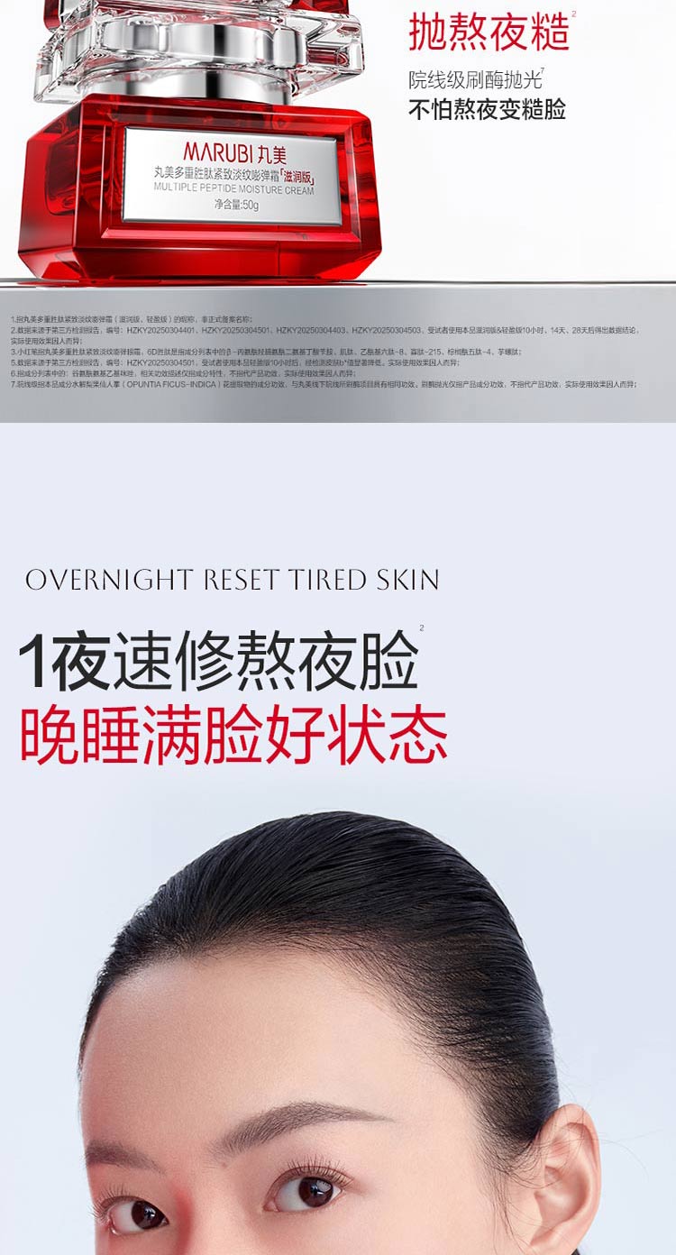 丸美二代多重胜肽小红笔嘭弹霜50g 敏肌紧致淡纹抗皱[重磅升级]+赠品(丸美多重胜肽紧致淡纹嘭弹霜(滋润版)25g*2)