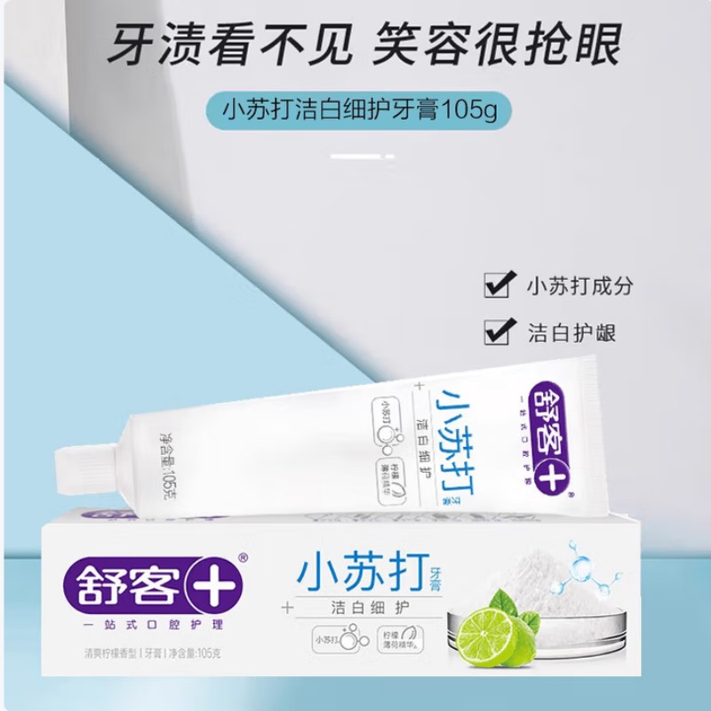 舒客洁白细护小苏打牙膏(清爽柠檬香型)105克+赠品牙刷2支