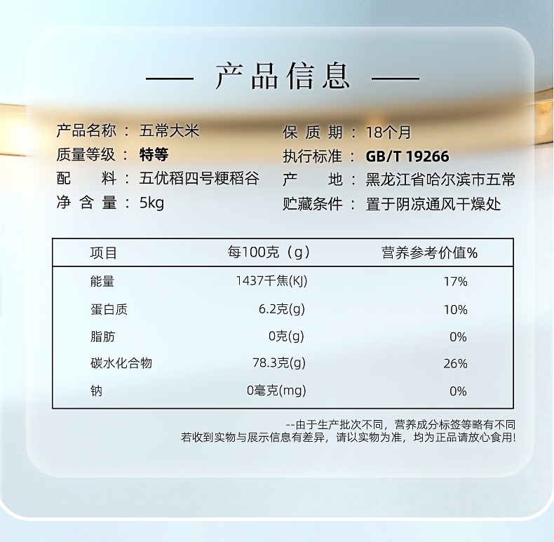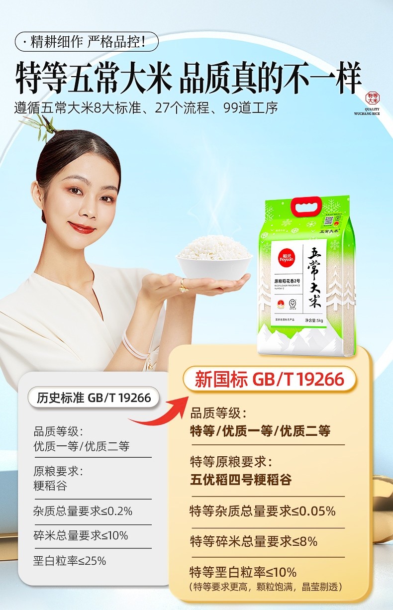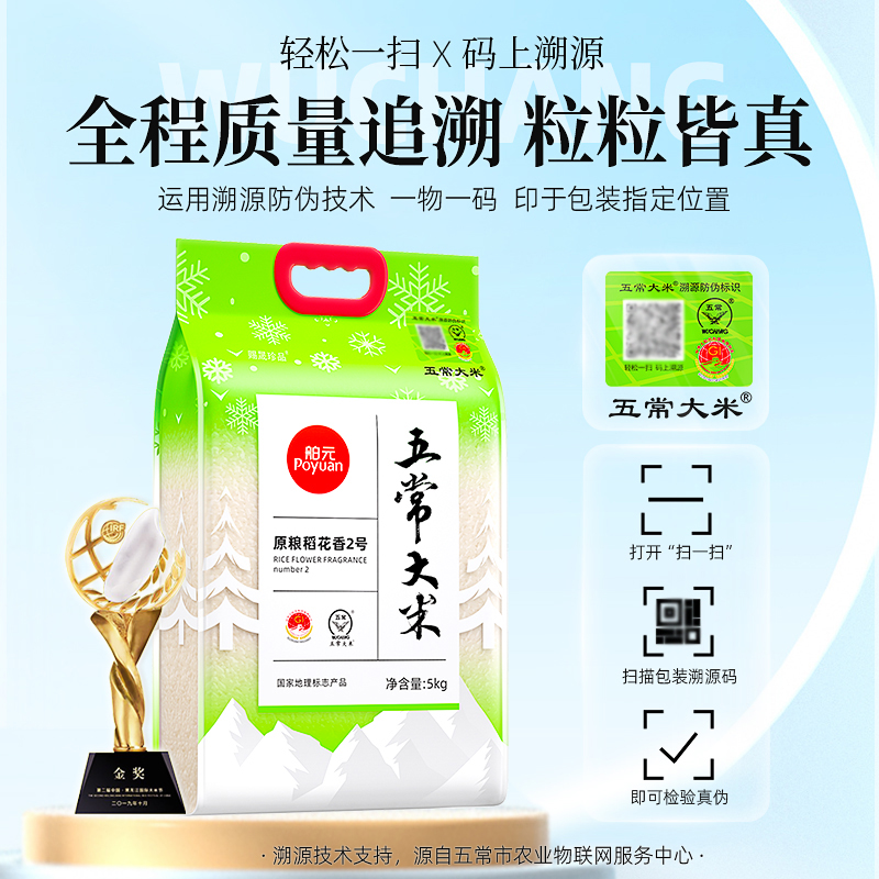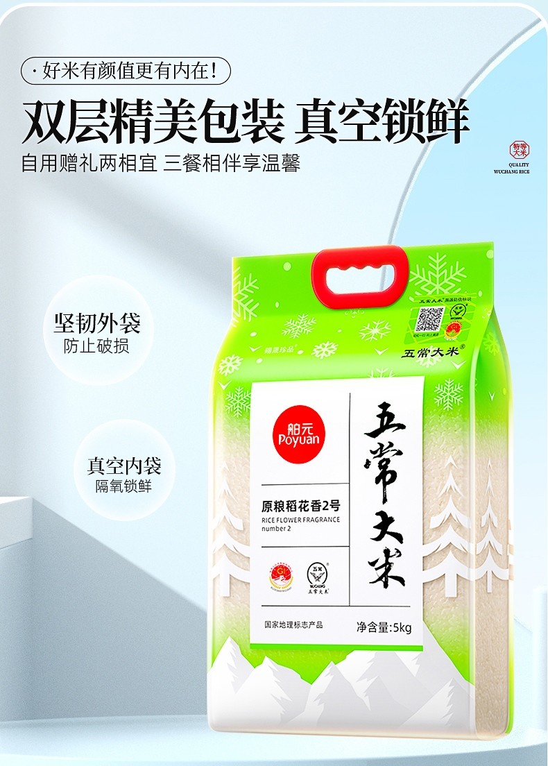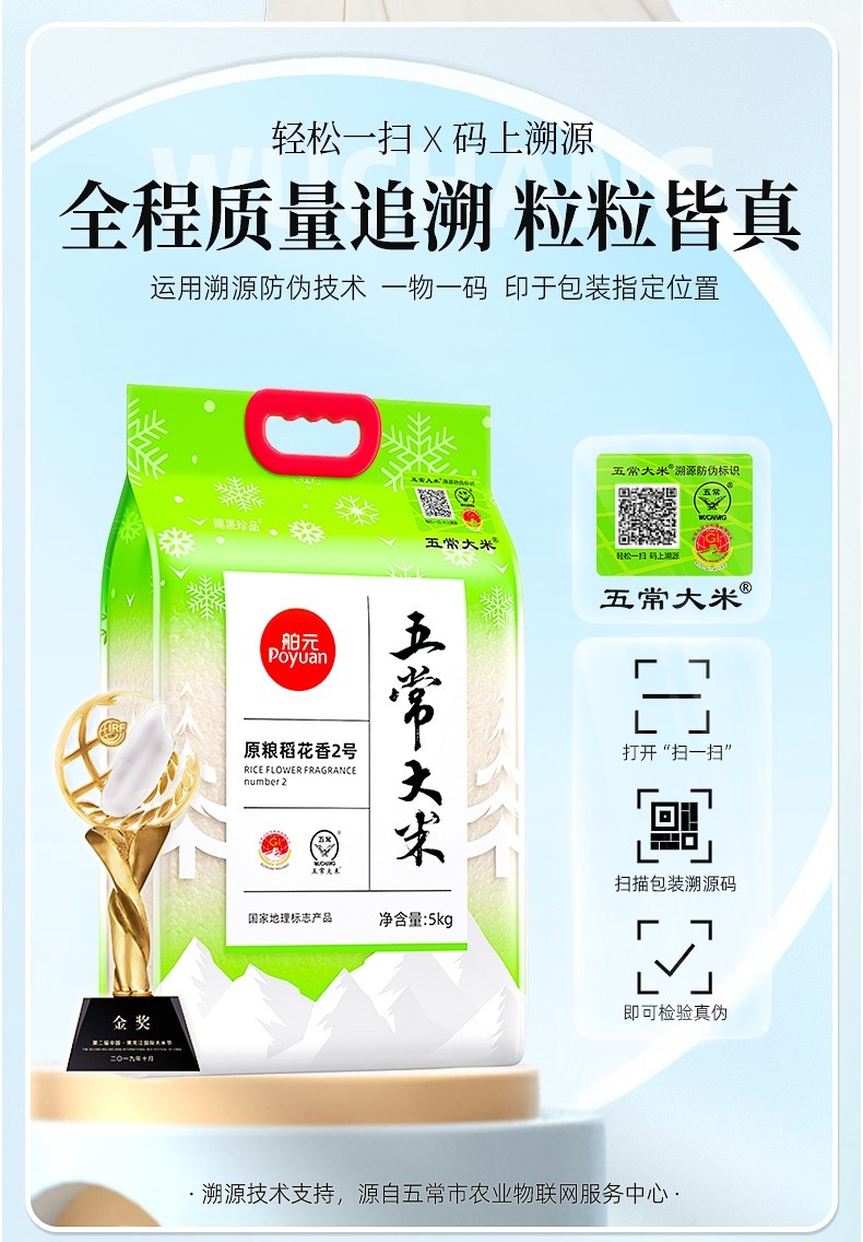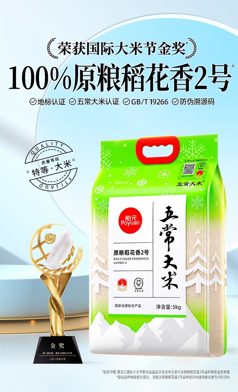 舶元五常大米原粮稻花香2号5kg东北大米GB/T19266