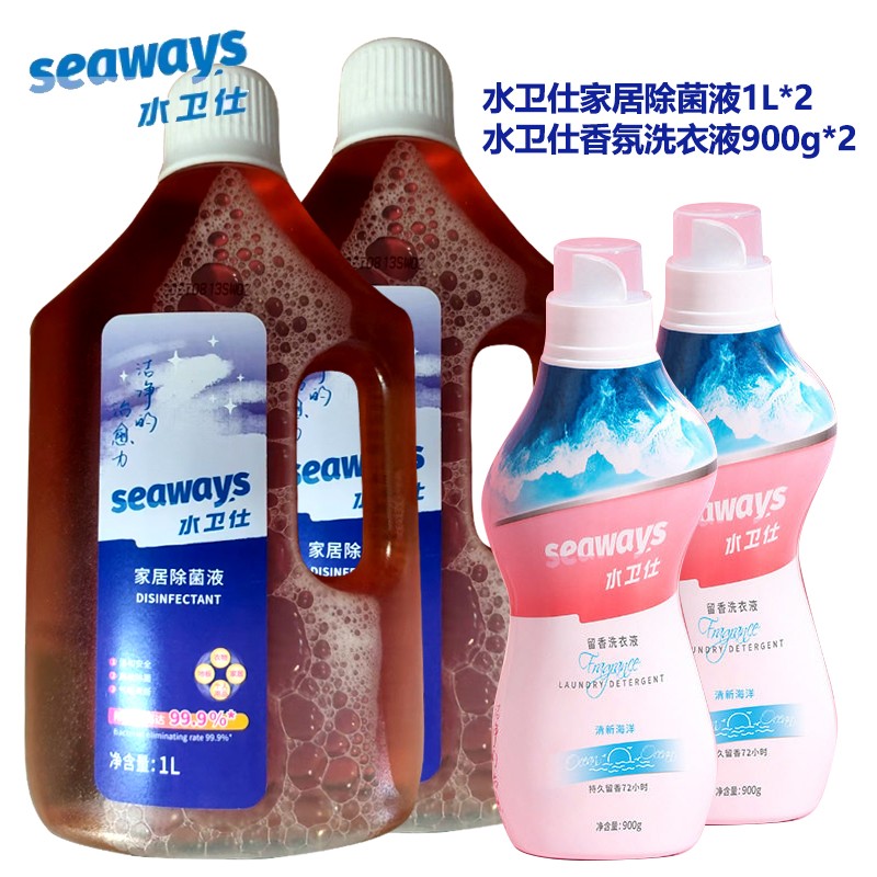 水卫仕香氛洗衣液900g*2瓶+水卫仕家居除菌液1L*2瓶