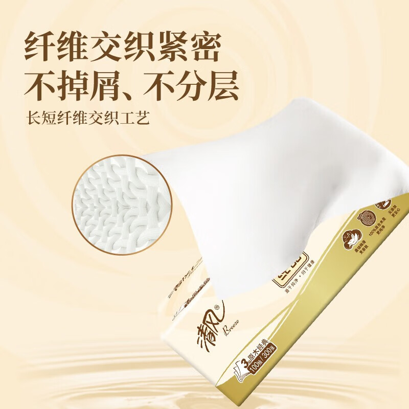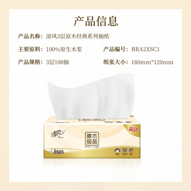 清风原木纯品系列亲肤抽纸3层100抽8联包(提装)