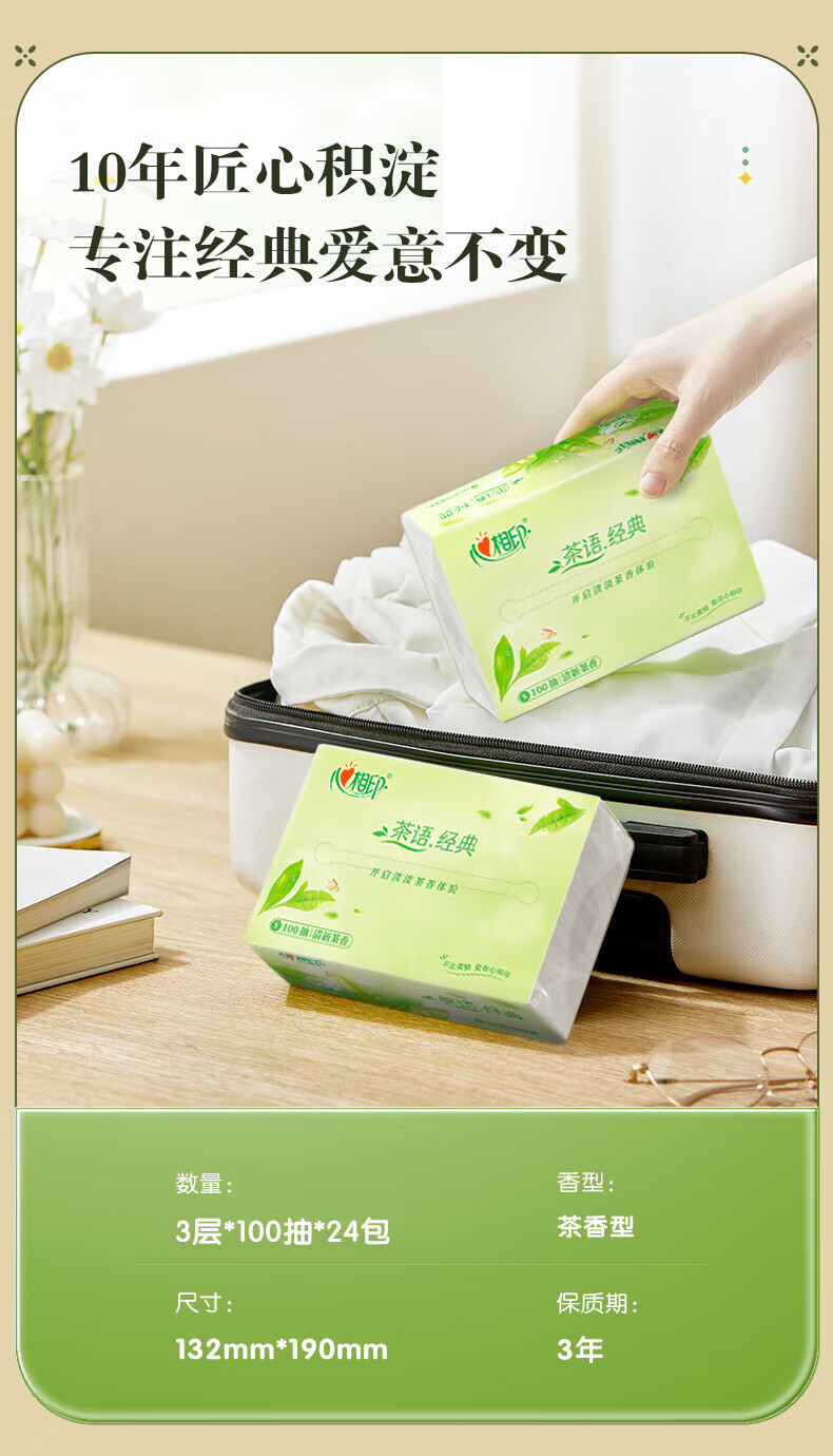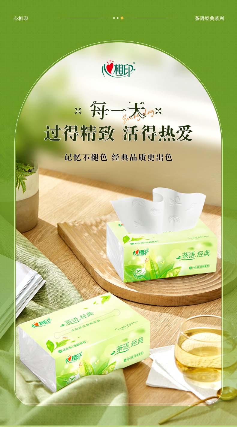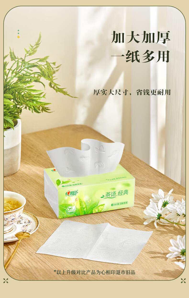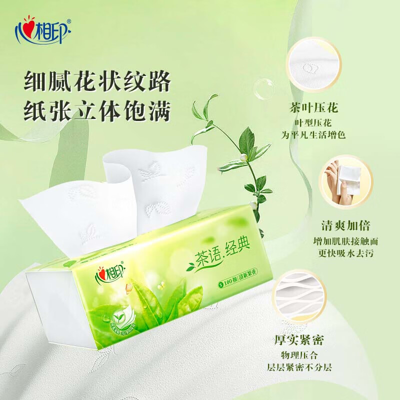 DT5100(电商箱装)心相印茶语经典100抽24包装三层塑装面巾纸