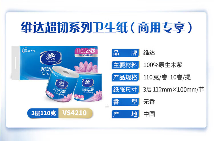 维达VS4210超韧有芯卷纸3层110g10卷*1提