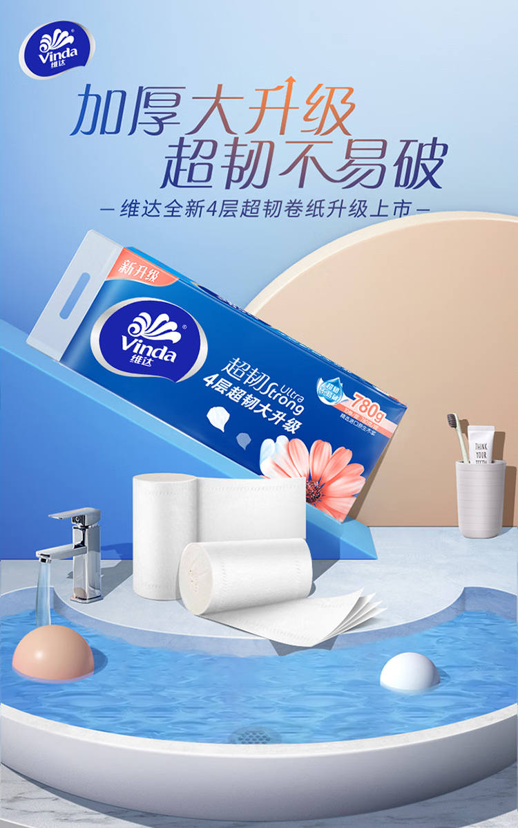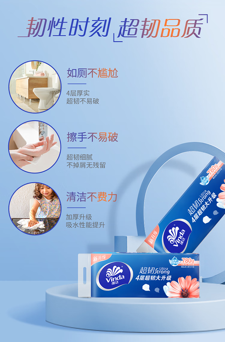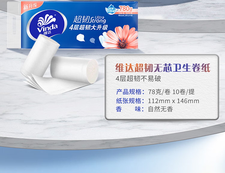 维达V4143超韧无芯卷纸4层78g10卷*1提