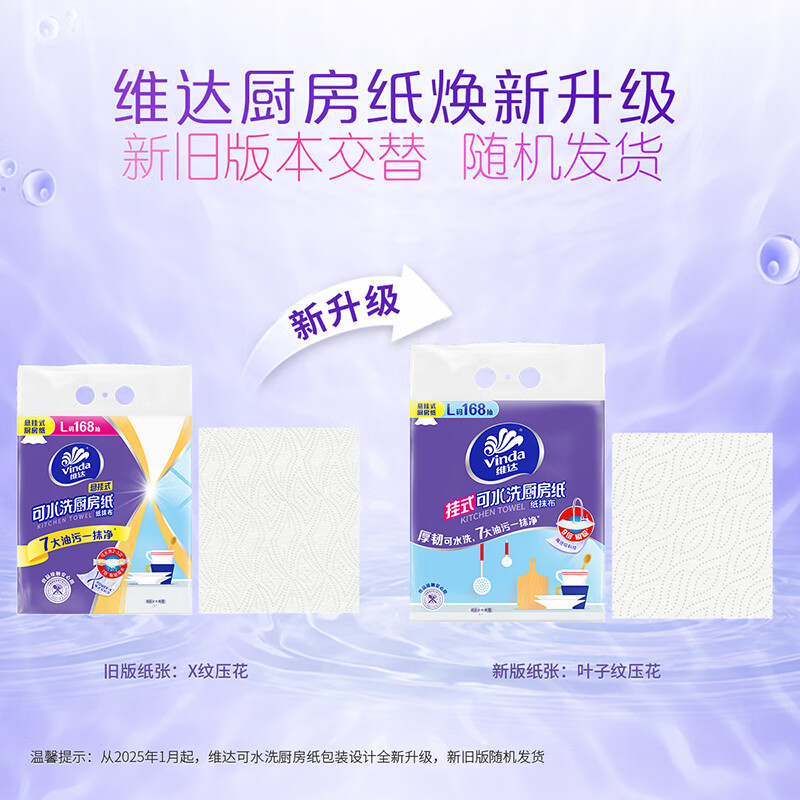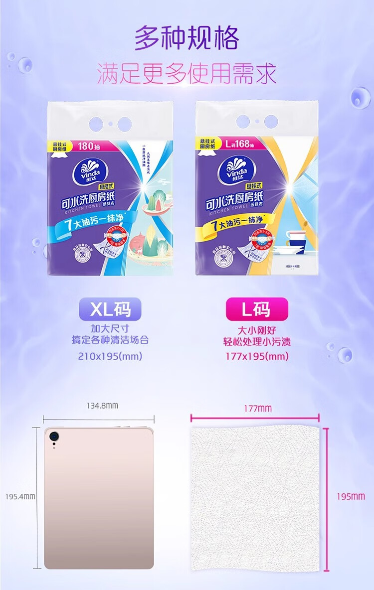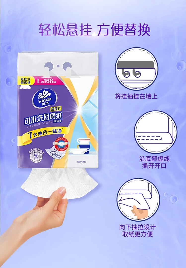 日用百货>居家日用>纸品纸巾> 维达V9803-A悬挂式厨房纸巾L码2层168抽*1提
