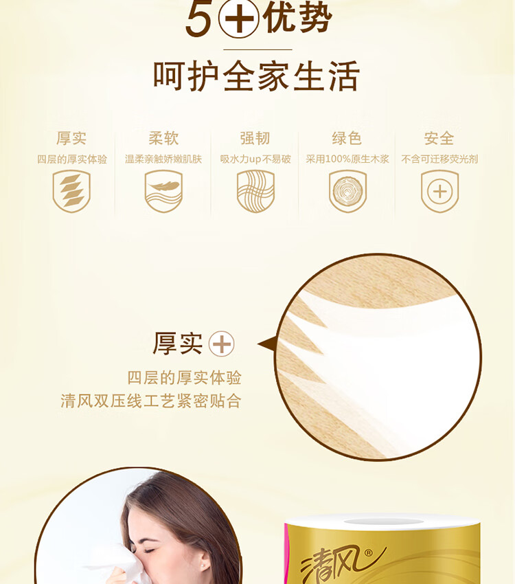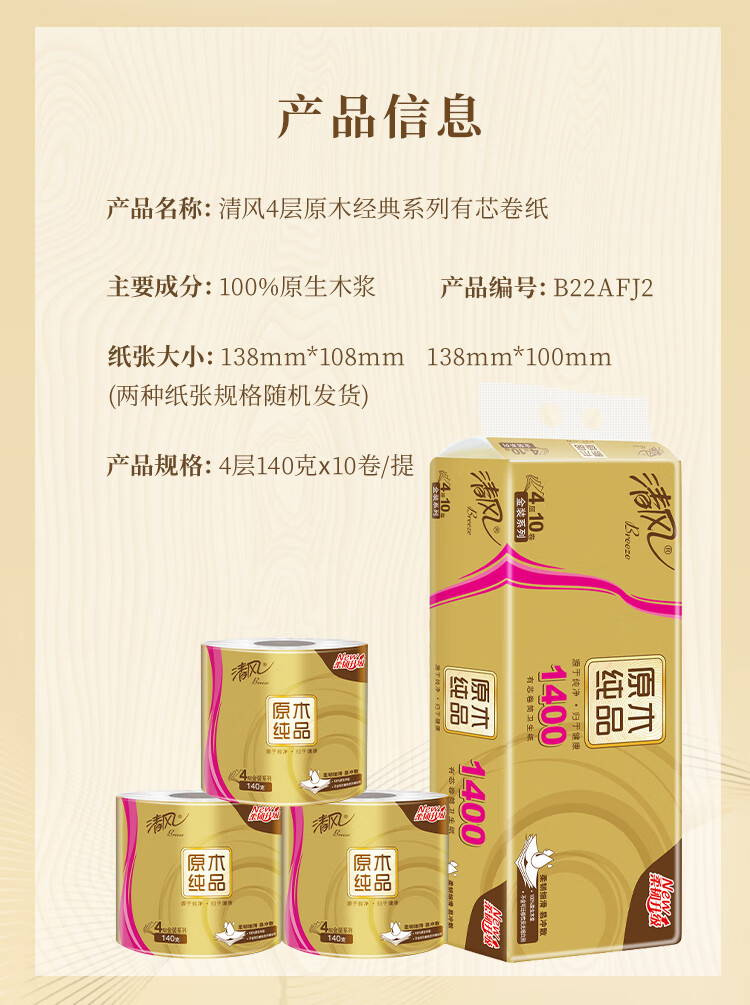 清风B20A6J金装有芯卷纸4层160g10卷*1提