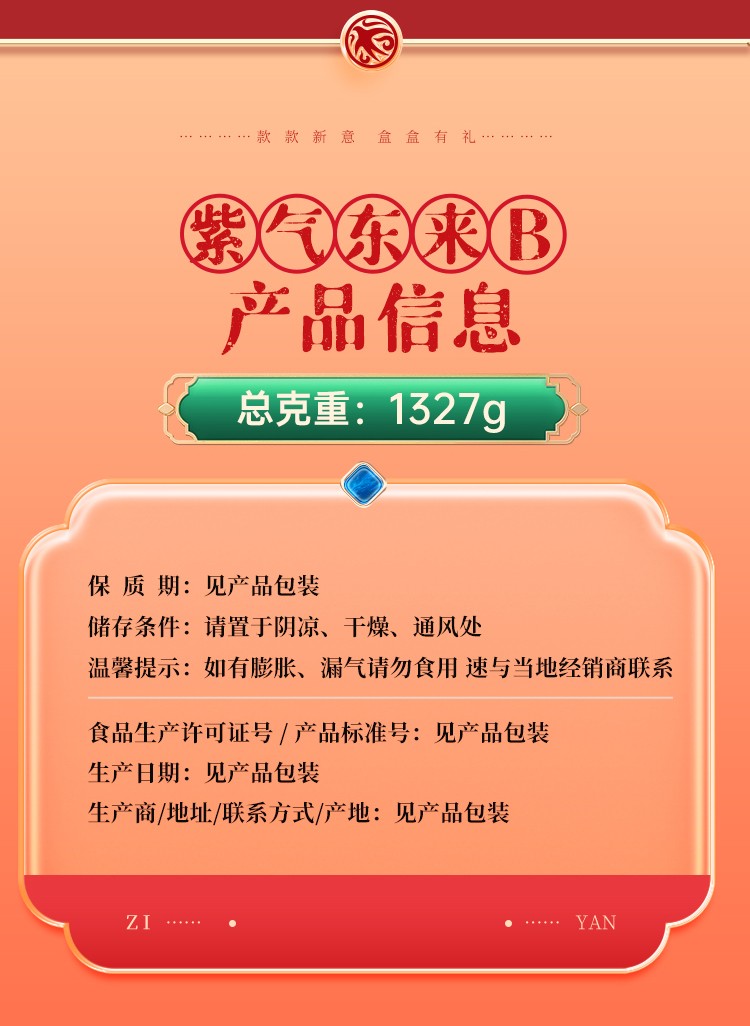 食品饮品>休闲零食>休闲肉制品> 紫燕锦绣系列紫气东来B礼盒1327g