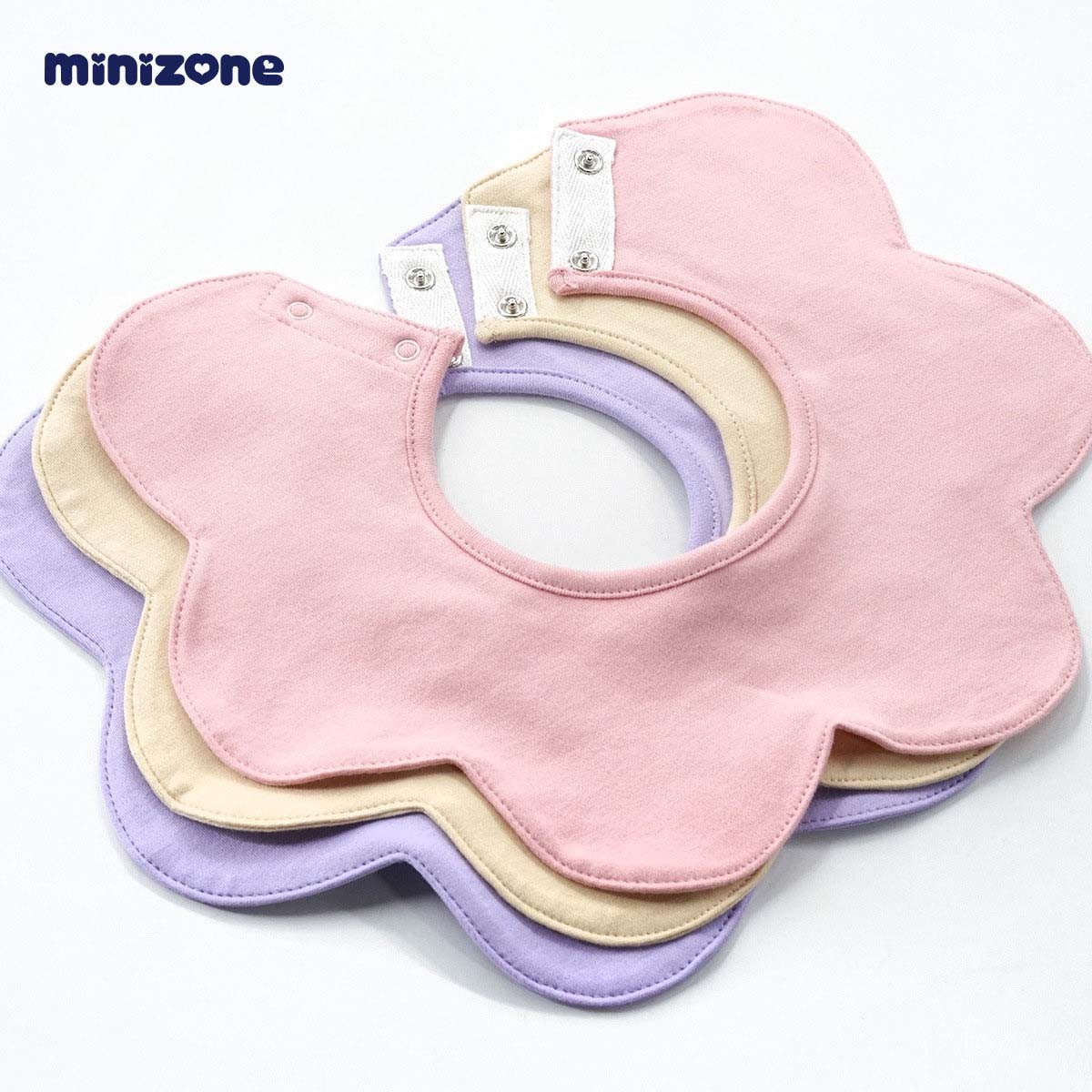 minizone婴儿口水巾360度旋转宝宝围兜饭兜吸水新生儿纯棉纱布围嘴三件套 M2041