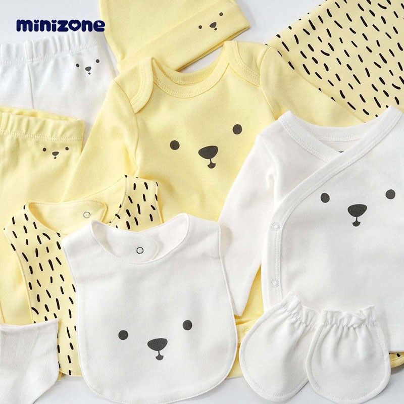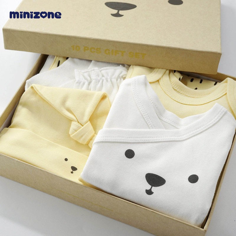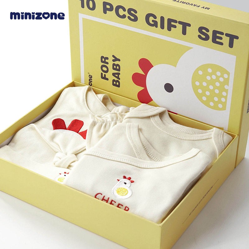 minizone春款新品男女宝宝婴儿礼盒内衣套装手套脚套新生儿10件套秋冬M1259