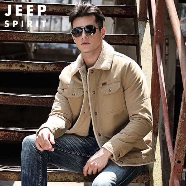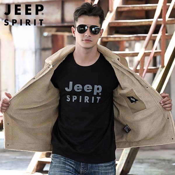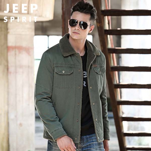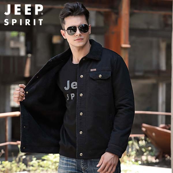 JEEP SPIRIT秋冬男装新款全棉舒适加绒保暖拉链口袋休闲运动款夹克0011