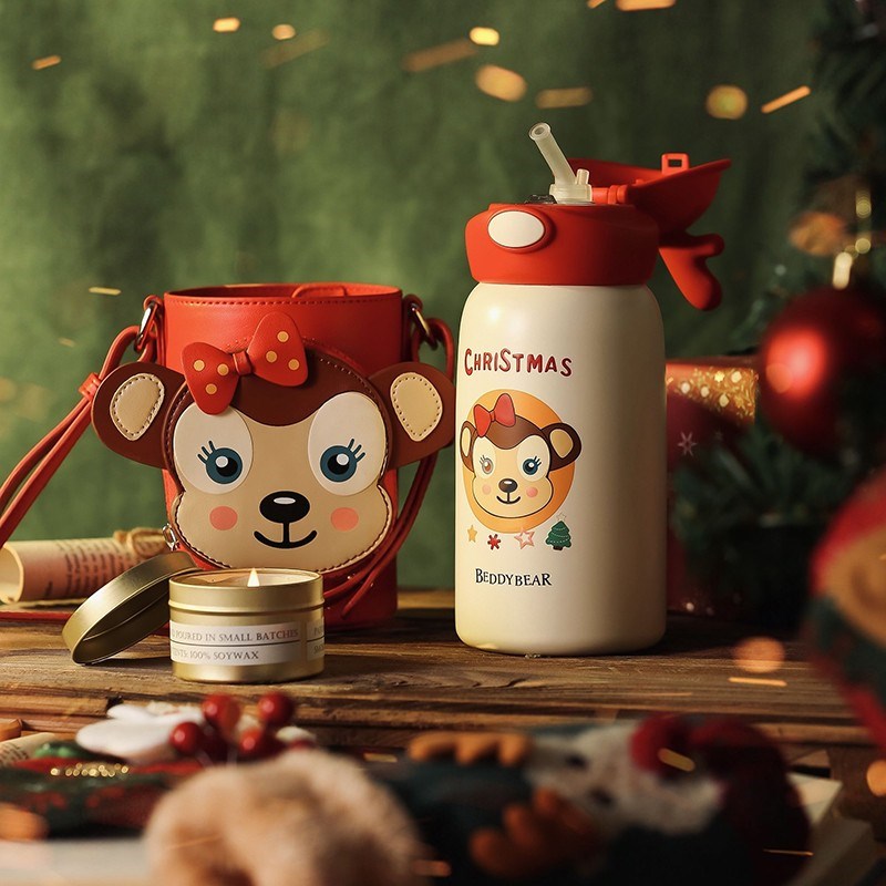 韩国杯具熊圣诞保温杯大脸鹿网红保温杯子男女童用保温杯