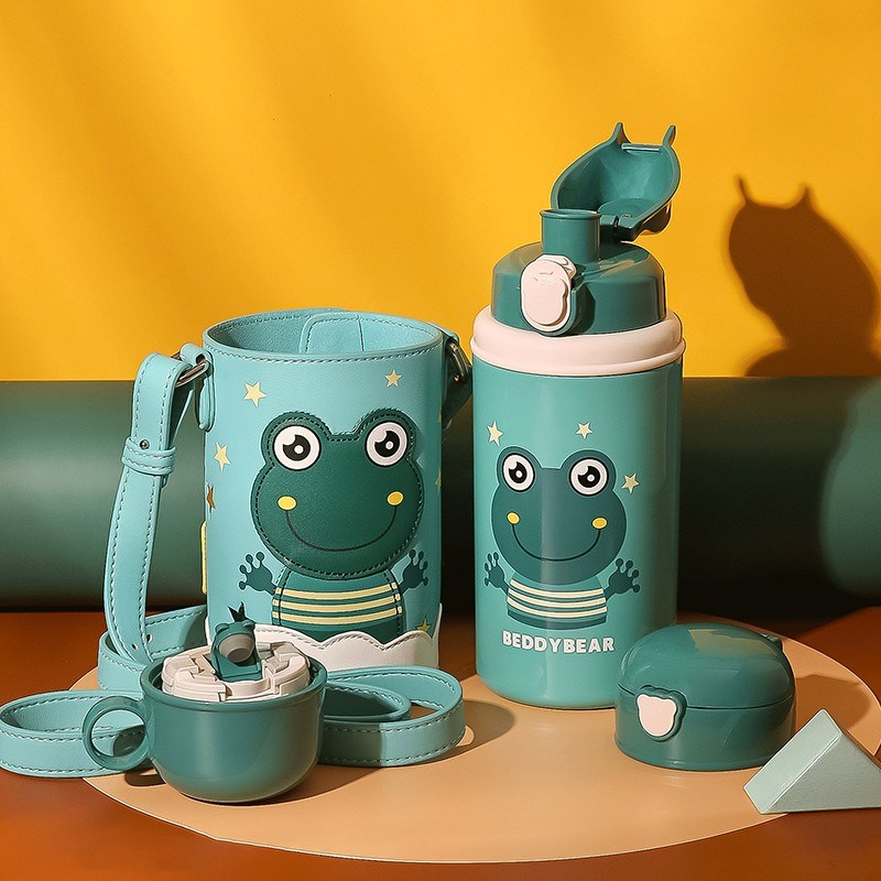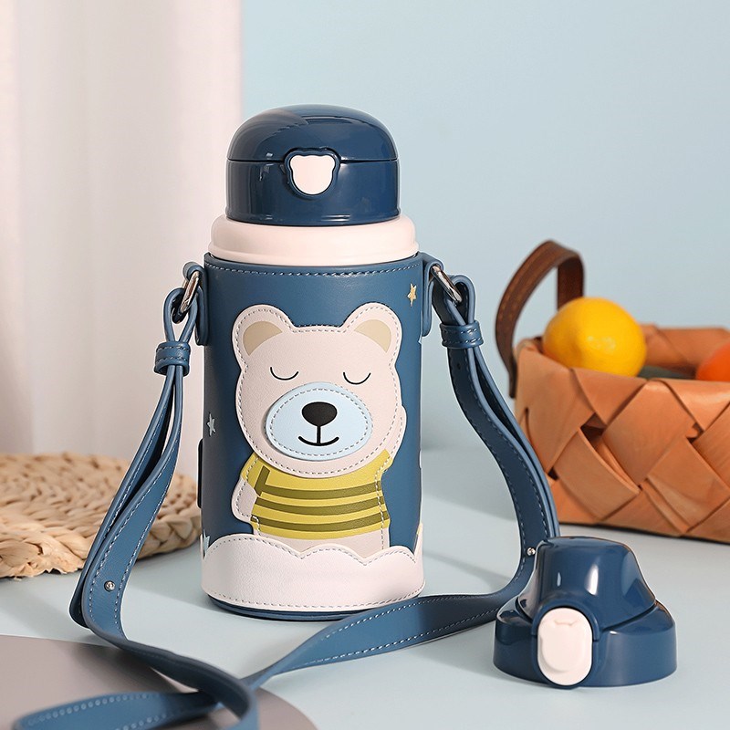 杯具熊儿童保温杯带吸管三盖两用水杯男女小学生宝宝防摔婴幼儿园水壶