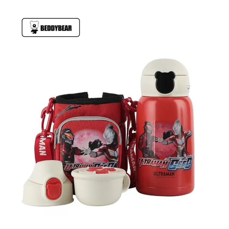 韩国杯具熊口袋儿童保温杯带吸管宝宝水杯两用幼儿园婴儿小学生水壶