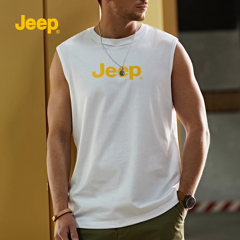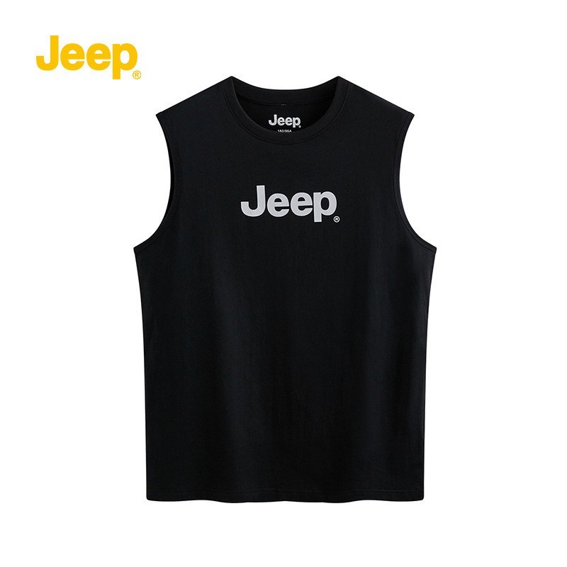 JEEP夏季现货宽松型纯色无袖棉纯色青年体恤P212MKT067